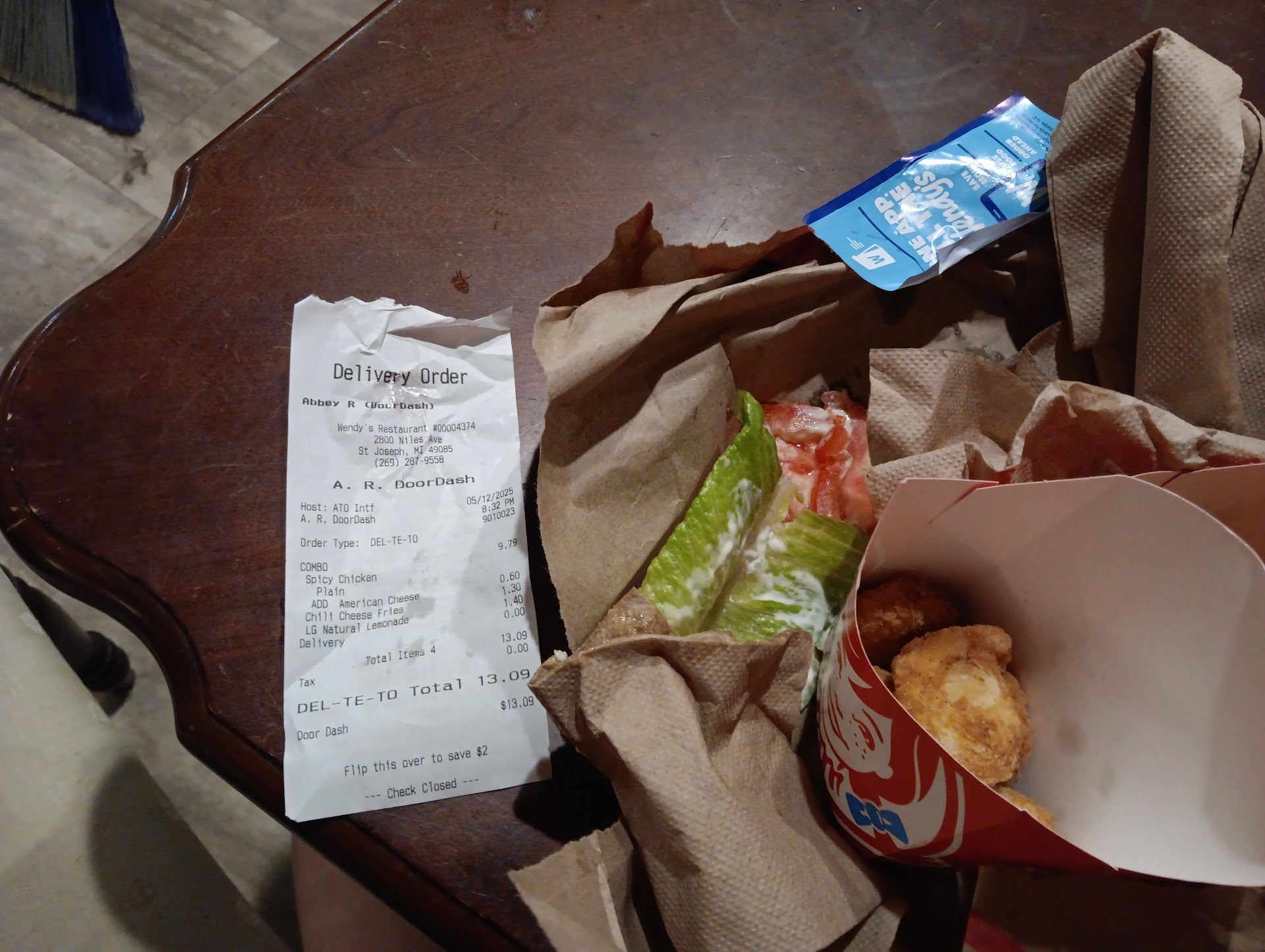 Last night, we ordered again. Again, at the drive-thru was told "you gotta wait 5 minutes" with nobodyelse in the line (3:30pm). Not sure what that was about. 5 minutes later and now a line of cars behind me, they take our order. Two Son of Baconater sandwiches and a fish sandwich combo. Again the beef patties looked like they were cooked three days ago and sandwiches were DROWNING in ketchup. There was more weight of ketchup than the rest of the sandwich combined. Made everything inedible. The fish sandwich was OK but the fries were literally raw and still frozen, but coated in cold grease.
