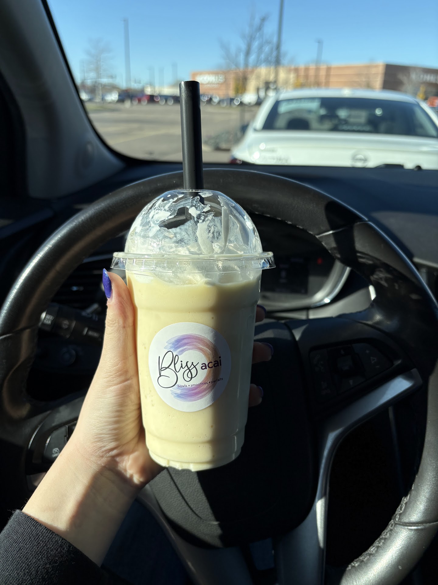 Read moreI’m always a fan of smoothies and smoothie bowls so I have been looking forward to trying bliss Acai!! I was the only one there when ordering so I got to take a look at the menu and figure out what I wanted. I ended up getting the paradise bowl: passion fruit, coconut, and pineapple mango base with bananas, blueberries and strawberry toppings. While working on my bowl I was talking to Emily. She was super friendly and we had a great conversation!