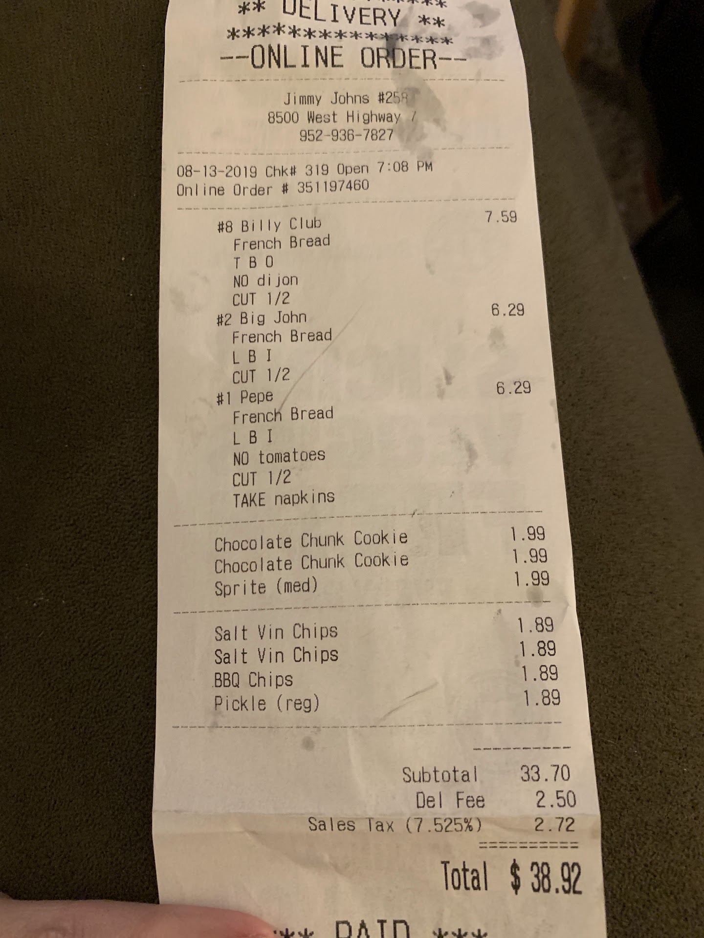 Ok. No big deal. Called in, asked for a new sandwich. Guy on the phone (who I later learned delivered) was pleasant and surprised. He apologized and got another going. Awesome response. Note: I offered a picture of the sandwich, which was declined as unnecessary. This is relevant for later.