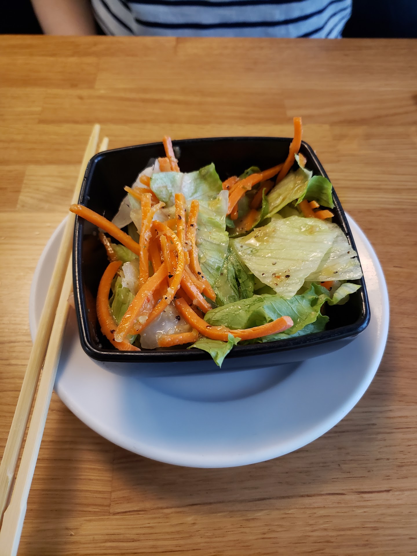 My partner's lunch combo included the spring roll, ginger salad, and entree of chow mein with tofu. The ginger salad had a weird sweetness to it that we both weren't a fan of (1/5), the spring roll didn't taste of fresh herbs and the peanut sauce it came with was also weirdly sweeter than your typical hoisen sauce (1/5). Her chow mein was also a little over sauced and once again, weirdly sweet. The tofu absorbed a lot of the sauce so it was a little goopy (2/5). She had also ordered the ice thai tea and that was sweetened with condensed milk that made it very sweet as well and the tea leaves weren't steeped enough as it was very faint flavors of the tea (1/5).