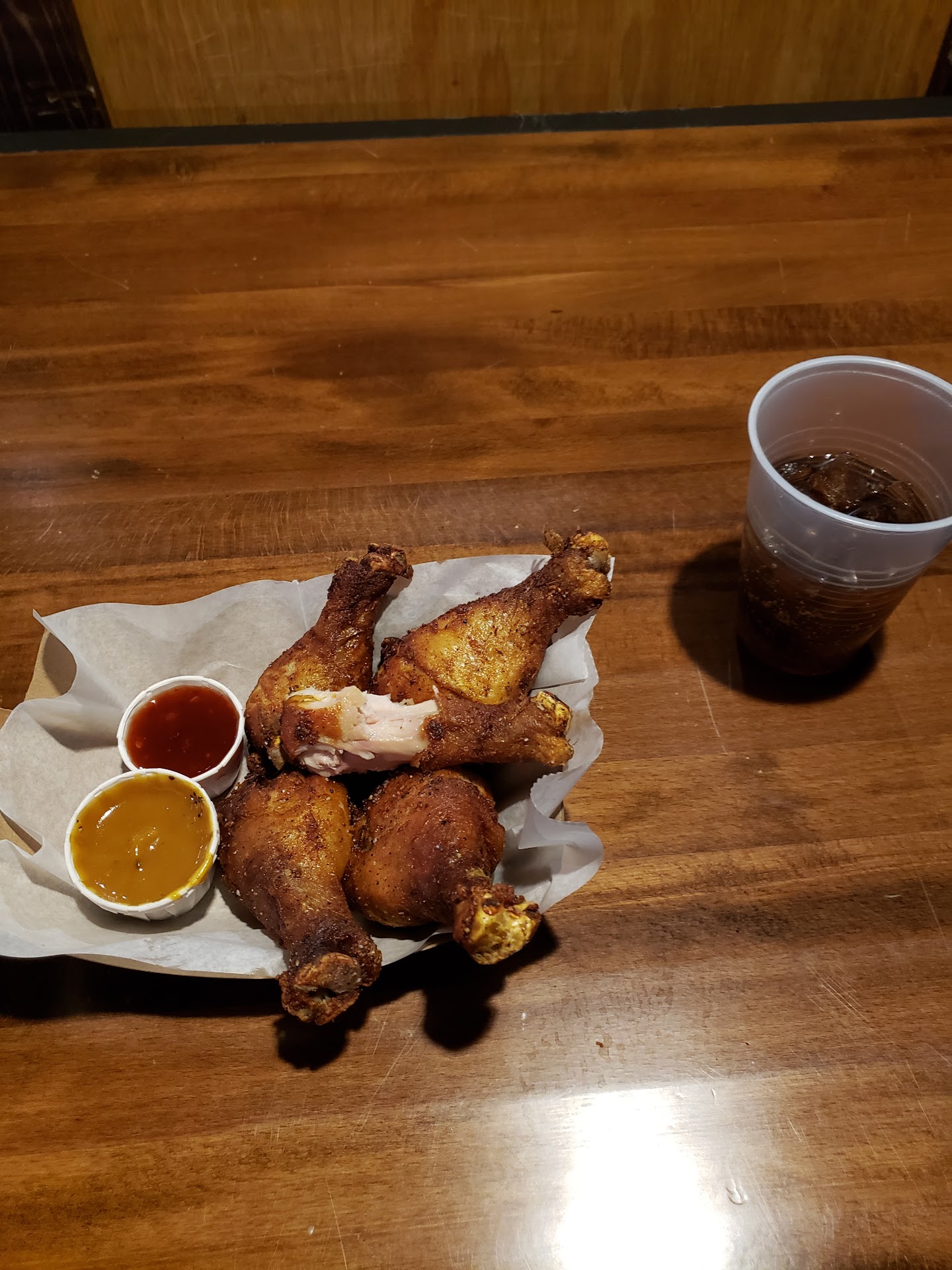 We (being service industry workers and bar managers) unfortunately sat at the bar on a semi-busy Saturday, and he was losing his cool. I put a $20 bill on the bar and waited a very short time for him to notice me, which was awesome, but then he berated me: "Just shout out what you want! We're busy and can't wait for you!" Really dude? You have 20 people at the bar with full drinks, and you're yelling at me for what reason exactly? Oh, sorry that I was politely waiting for you to notice me. Next time I'll bring in an air horn to get your attention.