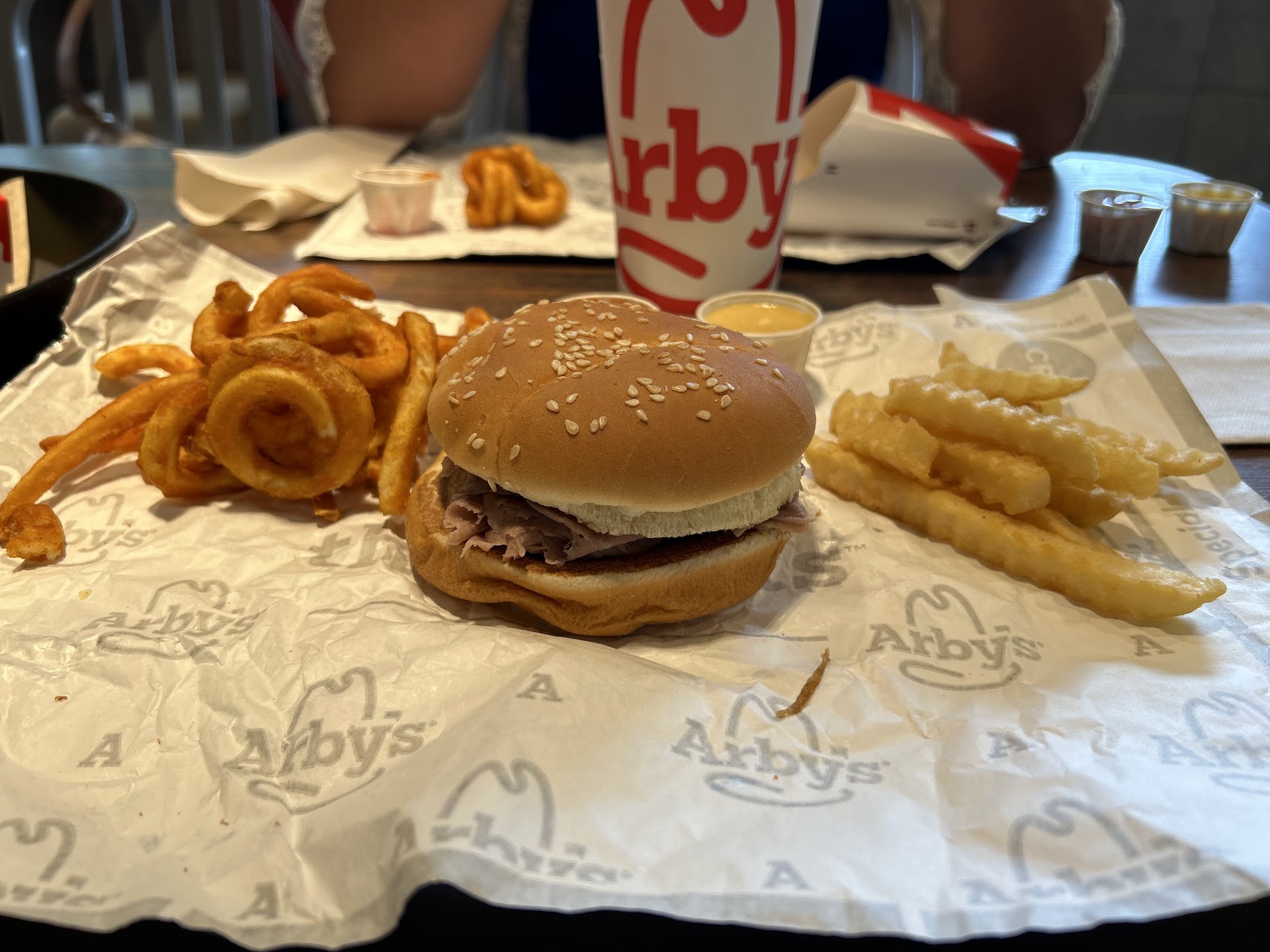 Old outdated review Ordered a roast beef sandwich with curly fries. The fries were very cold and tasted horrible, the bun on the burger was dry. How?! You're better than this! I eat there almost every other day.