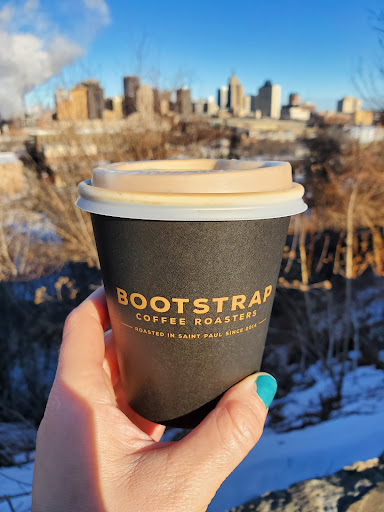 Read moreFirst time at Bootstrap Coffee. There’s a lot of street parking because it’s a corner lot across from Wabasha Brewery. As you walk up to the store there’s a shattered glass side panel that’s all taped, which I found this alarming to see. I was greeted by friendly staff members once we were inside. The menu isn’t a standard board you read above the ordering counter and you’re handed a paper menu. I’d suggest having it laminated. You have to make sure you read it thoroughly. There’s small indications by the drinks that can be made cold with a snowflake and I had asked instead. There was samples out for their salted caramel cookie and it was love at first bite. Of course, we got a half pound caramel cookie. Several options for pastries like doughnuts, muffins and three types of cookies. I’m not a coffee guru, ordering a iced vanilla latte and it tasted like cold brewed coffee made at home. The lids and straws are at a separate counter to the side and I do love that there products are compostable. I scanned the indoors seating and there wasn’t a big selection due to a smaller establishment with the roasting area taking up a large portion. I didn’t really notice any patio seating as an option as I exited out...