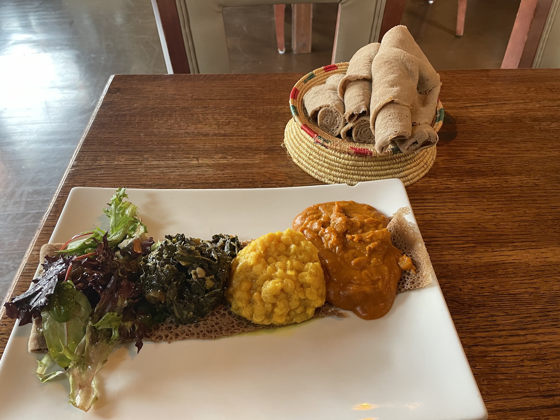 Food: I ordered a bunch of things to try and bring home. Vegetable Sampler, Shiro, Lega Tibs, and Doro Wat.