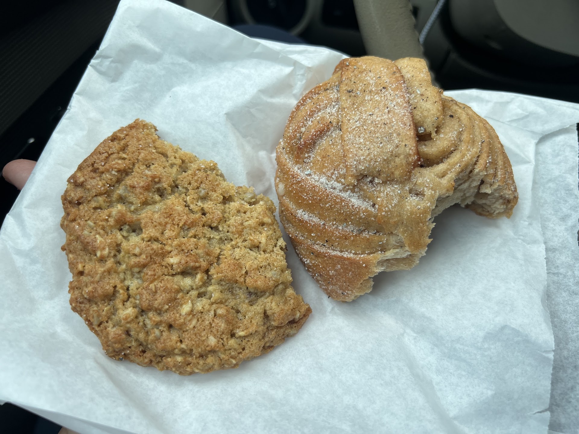 The cinnamon rolls were lightly glazed with frosting, the exterior was a bit crisp and chewy, and the inside was a soft ribbon of cinnamon laced dough. The glaze and cinnamon did not overwhelm the roll––It was sweet but not too sweet. A perfect counterpoint to gooey, sugary rolls found in shopping malls.