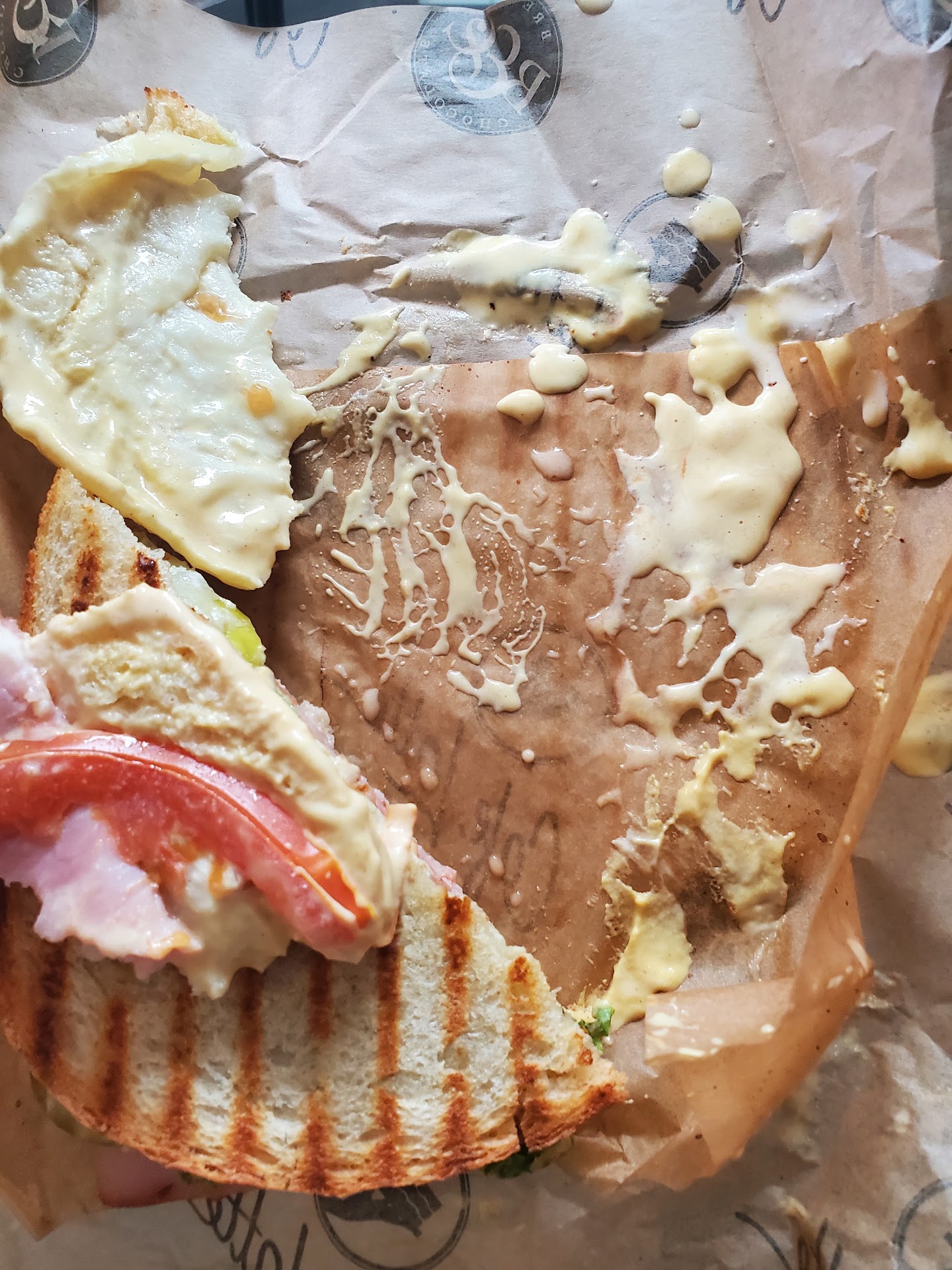 Typically, a 4 or 5 Star for service, sweets & lunch. Unfortunately, NOT TODAY!!! The male, who was working with a Very Pleasant female, was not happy about his job of being on the sandwich line. The poor elderly woman in front of us asked for 1/2 egg salad, he began making a full, B4 she reiterate 1/2. The egg salad fell onto the counter and condiment bar, he took his fingers, scooped it up and asked if she wanted veggies, Gross, Really? I was relieved to get the female, she prepared my peninni like it was hers w/ a nice side salad & Red Pepper sauce, my friend was not so fortunate, he got the guy, his sandwich was a mess, oozing with gobs of mayo and mustard, thrown on glob style! See pics of my sandwich vs his dripping disaster w/mayo & mustard everywhere. To add insult to injury, the person waiting on me had to ask my friend if he wanted a side salad and red pepper sauce, the guy, totallyspaced out and movedon to slopping the next guests lunch together.. The guy woke up and threw the side salad together w/ the wrong dressing, OMG, Ugh, Get that guy off the customer service line...FAST!!! Worst part, there were only 5 people in line, including the two of us, so what was the reason for the Hasty...