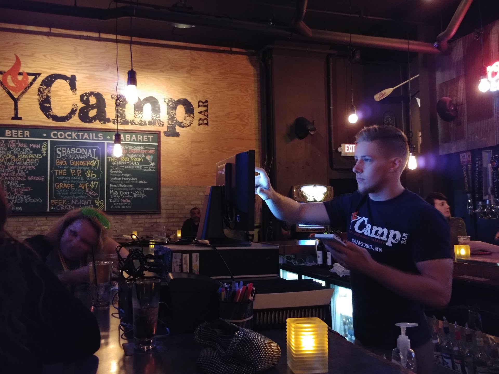 Read moreI went there for the Monday open mic. Thank goodness the Martinis were good because there was no open mic and no explanation on why there was no open mic, even though the website prompted its open mic as one of the best in the Twin Cities. Sign ups are supposed to start at 9 and the open mic is supposed to start at 9:30. I was too busy writing, reciting and sipping on my Martini to notice that it was 10:30 and the Cheers crowd packed the place, playing pool, darts and talking politics. I mentioned the open mic to the bartender (who knew I came there for that specific reason) and he brushed it off as a fluke and went on being Sam the Bartender from Cheers. That's all fine and dandy, but I took Tuesday off to see some local talent, have a couple of Martinis, and perform. What I got instead was a thirty-, something crowd that wasn't really concerned about an open mic or live performances. The complaint isn't about the service, the drinks, or the people. It's about advertising and open mic that may or may not happen. Just a friendly warning to my fellow Underground Artists who may choose this spot to do their thing on a Monday night. Most of us have day jobs, families, and other responsibilities. When an establishment promotes an open mic, there should be an open mic, whether there's one performer or a dozen. Very disappointed in the CAMP Bar. Saint Paul needs a space for underground performances. If you don't have it, don't promote it, and we'll take our performances to places that are concerned with helping us practice and perfect our art. Not ignoring us and catering to Cliff Calvin the Mail Man who comes there 4 times a week. Artists beware. Daddy...
