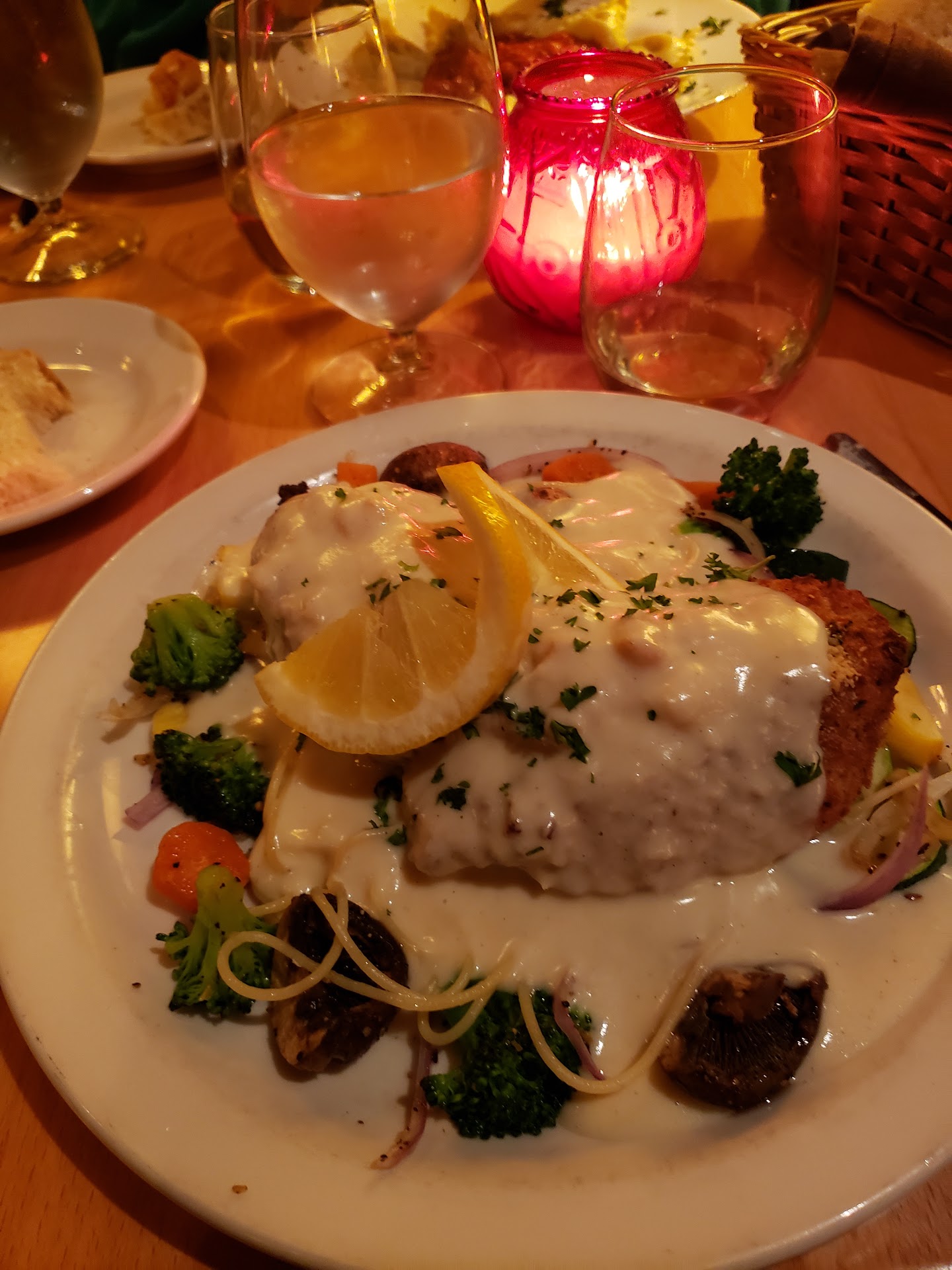 Read moreNot a good experience. Will likely never go back. It was a busy night. We had no reservation. Our mistake. We were told it would be 15 minutes; our wait was 35 minutes. Shortly after we were seated a couple was seated at the table to my left. Even though we were seated first, the server waited on them first. She then left rather than waiting on us. Finally she came to our table. The couple received their salads quickly; ours took a long time. We were not offered vinegar/oil for our bread. I had to ask when I saw the other table had some. I asked for lemon for my water but never received any. When our food finally came, after the table next to us received theirs before we did, we were not offered Parmesan cheese. I heard it offered at another table. Normally wait staff refills water glasses regularly. I had to ask for more water. We were barely finished and our plates were whisked away, even my knife while I was still enjoying the bread. It felt as though we were being rushed. The food was ok but not the best I've had. My favorite was the bread, which was delicious. it was very loud and noisy; I could barely hear my daughter, who was less than 3' from me.