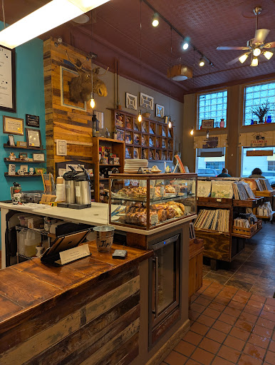I had heard of Caydence...but never stopped in until last night to catch a gig. Whoa... what a hidden gem!! The door fella was super friendly and caught me offguard when I was reaching for my wallet for the cover charge, when he asked cash or card? We can charge a cover charge? I am a rarity.... no record player, so I didn't look around, also not a coffee drinker so I didn't stop by the counter. I asked the doorman if the shows were standing room only or there were chairs? He said standing but he would check. He popped out w a metal stool. I told him that would be great! The stage area is maybe 35 steps away from the door and there were two small high top tables back there. Before the stage area there are two tables and chairs for guests to sit at, across from the coffee counter. Free street parking is plenty on Payne, most of the hour restrictions are for the afternoon. I liked the friendly door fella even more when he came back to the music area during the first show and was jumping around to the music and taking video! The acoustics/music are great for such a small area. When I left the door fella said they have live music every Friday & Saturday night. I went last night specifically to hear/see the Dirty Pretty but was extremely blown away by the rad music of Polar Red so I may pop in on occasion to hear other local bands... find some new music! If you like local music, have a record player, drink coffee, or just want to support a local business, stop in to Caydence!! Thanks Caydence, Polar Red and The Dirty Pretty fun an outstanding...