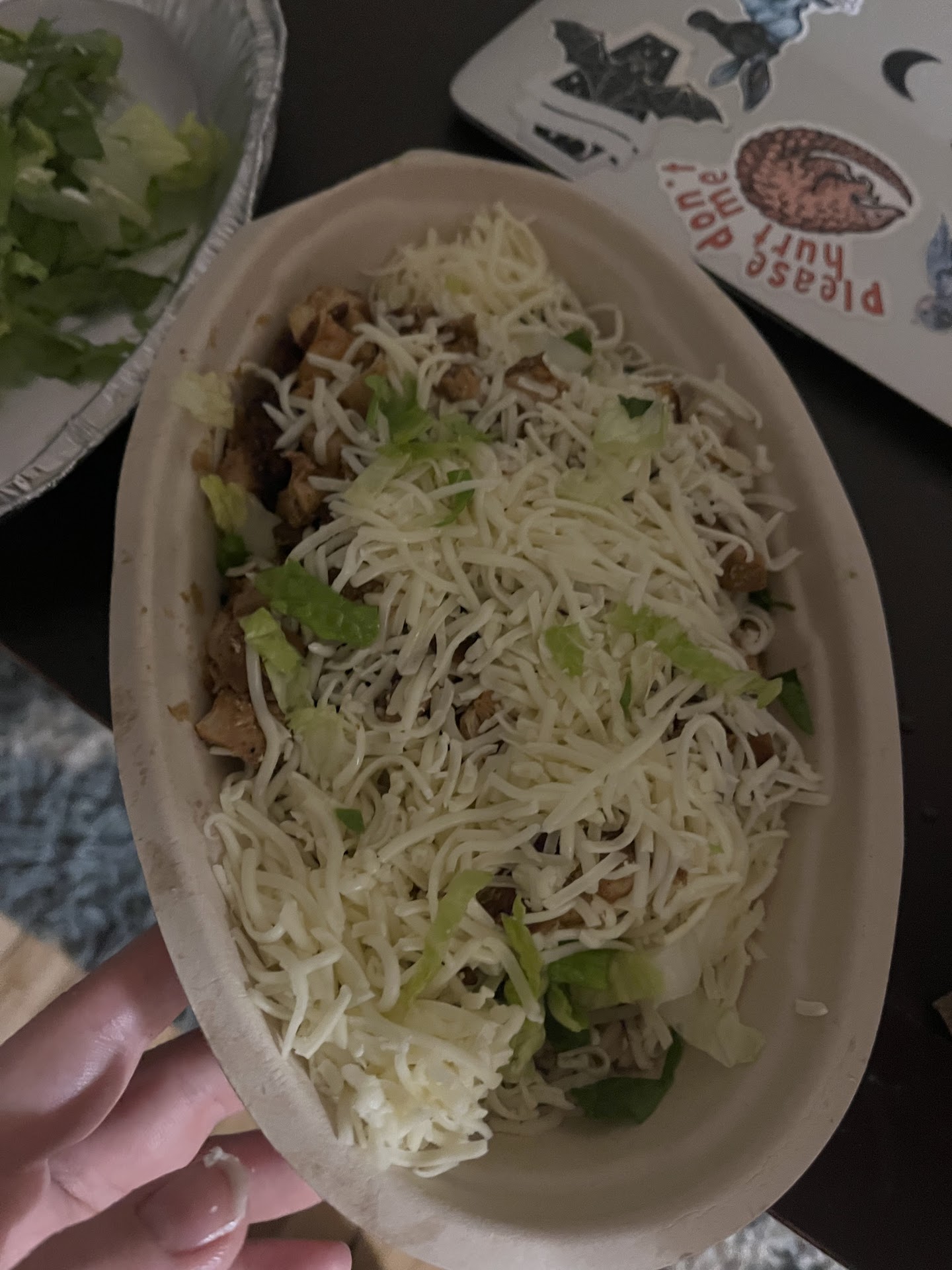 I started off my order by asking for 2 bowls and one with plain white rice. The lady serving me scoffed, rolled her eyes, and said ābe for realā and tried to refuse my request. I insisted and I felt stupid for asking but I know Chipolte does this because I used to work at one and my partner literally has food poisoning so I could care less about the 3 second inconvenience (I get itās annoying but like, Iām stressed out and I am the customer, you do as I say and you do it with a smile). That immediately put me off and made me upset and flustered but what came next⦠I seriously have no words.