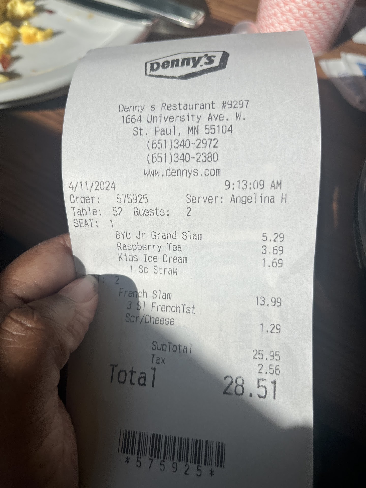 I usually never place reviews ever I feel like most people are over dramatic or Karenās in their reviews, but I first came to this location a year ago and the service was very slow i remember I had to wait like 20 plus minutes just to get my order taken and probably another 15 for the food but overall my Server was a skinny tall black woman and I tipped her 20 bucks she was nice.. at least that time, so I came in today after a year and Iām a skinny tall young black man I usually eat at least once a day sometimes twice after my mma workouts, anyways I seat myself and there a weird smell there itās always a weird smell but I wait 7 minutes until I got up and ask to be serviced they hand me a menu and I guess youāre supposed to wait until they come up to you?! I waited and for prospective I tried for two days to get a order but they were closed to low staffing so I had this in my mind I was gonna try to get a big meal in all day long so I wait another 10 minutes until I see the same lady who served me last time I ask can she place my order and she was hesitant and let a different server take my order she a black lady looks to be around my age think she has an accent, she has a short pony tail with nose piercing. she takes my order and everything seem to be fine for a tip I get my pancakes and thereās like a fishy smell to the plate but I had two plates and I used the other and the pancakes I got were cinnamon rolls, way too much frosting so it ruined it a bit for me but after scrapping it off i finished it the pancakes it self were ok just way too much frosting! So I was really hungry and I paid 13$ for the meal so the same server comes to me and ask if I need a drink refill I said yes and I asked her if she could also make another stack of 2 pancakes but just the regular buttermilk because i didnāt care for the cinnamon rolls she says āI canāt tell you surely ate themā š¤Ø I paid 13$ for the meal on a empty stomach ofc ima gonna eat it even if i slightly disliked them?! So it was a weird comment to make so once she came back I just asked for the bill she asked what happened because she knew that was a little extra I came to actually eat as I planned to and I had in my mind for days but that comment wasnāt extreme but i should be able to eat without making me feel bad for PAYING FOR MY OWN FOOD!! I paid no tip and she seemed to be mad afterwards not an extreme comment but Iām not gonna spend my money somewhere where Iām getting patronized lol š it is what it...