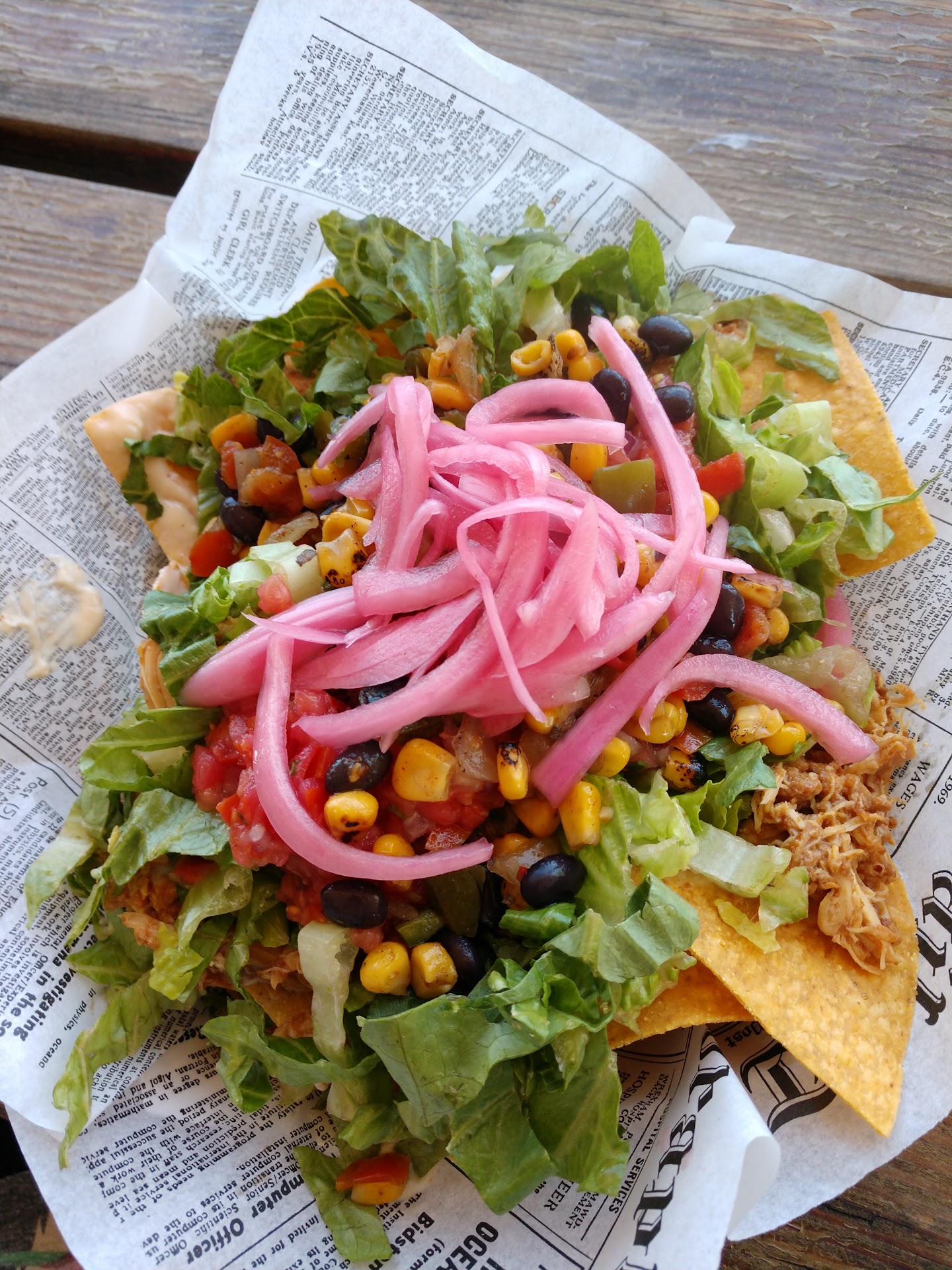 We ordered the chicken tinga nachos, the wild rice brat, and the elote hot dog. Nachos and especially the elote dog were excellent, and we'll definitely get them again! The wild rice brat was good but we'll probably try something else next time. The default side is kettle chips, but you can substitute the house-fried tortilla chips if you prefer. It would be great to see more side options (maybe even a side salad?) in the future, although you can also get a basket of fries for just $4. For drinks, we had a gin & tonic and the naughty pine - both were good and surprisingly strong! Like some other restaurants by this owner (Matty), most of the drinks are premixed so they are served up very quickly.