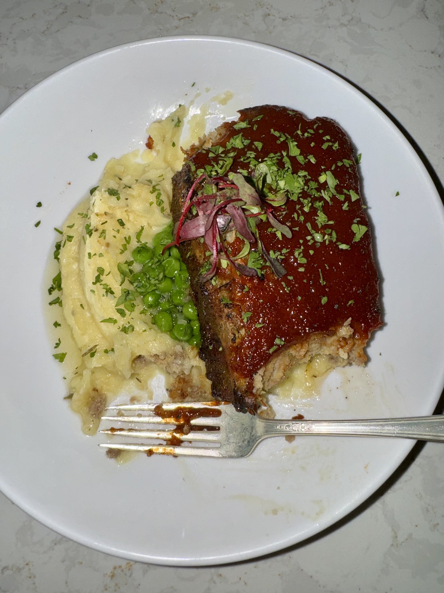 When I tell you this was the best G-D meatloaf Iâve had in my entire life (donât tell my gramma, lmao) Iâm not kidding. The seasoning? Immaculate. The slight crisp? To die for. (weâre not gonna talk about how I thought brĂ»lĂ©e meant I got a crĂšme brĂ»lĂ©e.) The potatoes??? Can I order them by the gallon, please??