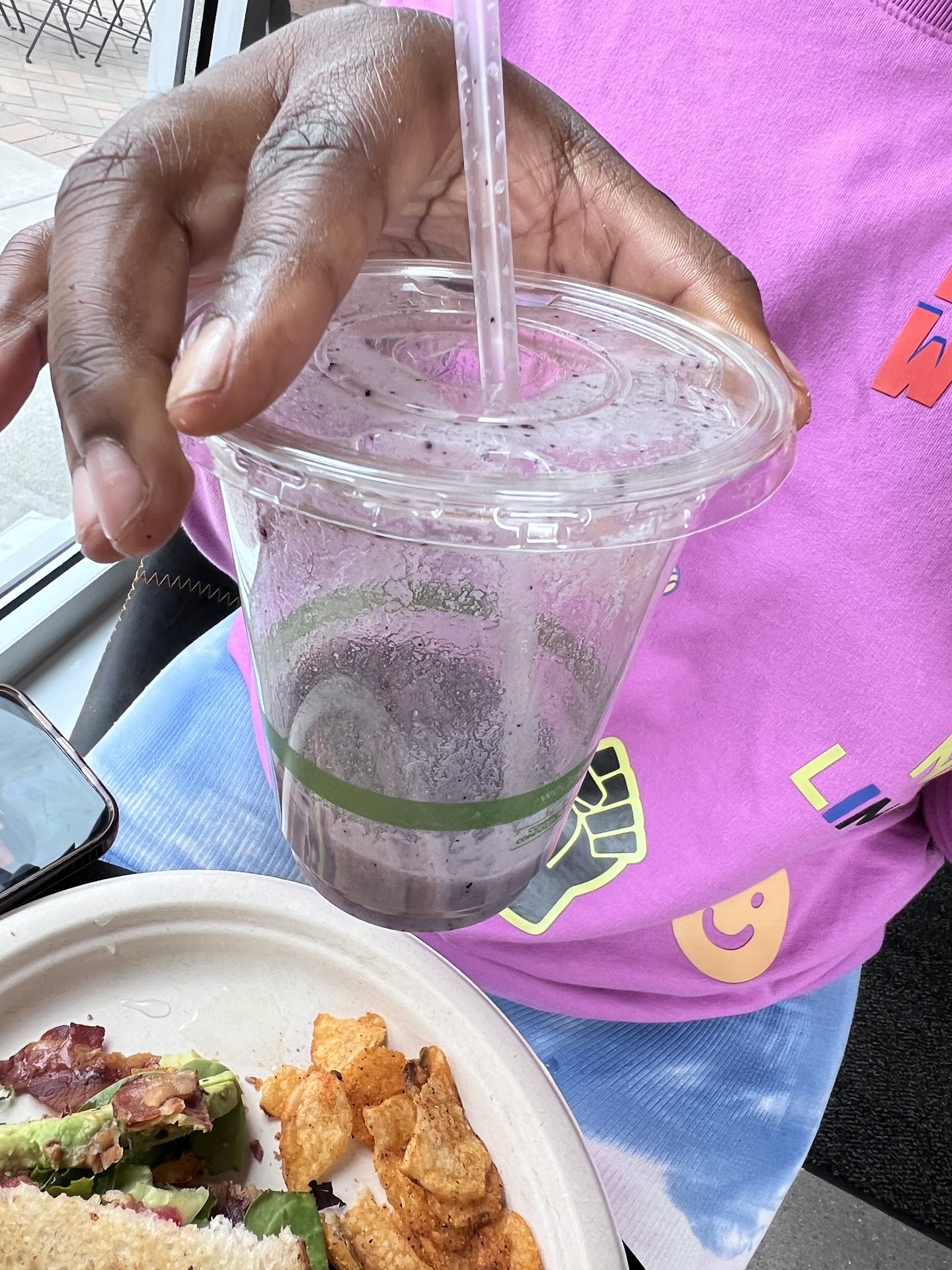 Read moreUpon arrival, was told they were out of espresso. Like a coffee shop, out of caffeine? Okay, odd. Although they have food items on the menu and a case that seemed like it should be full of baked goods, there were no baked goods in the case, and I had to settle for a CLIF granola bar. Since they had no espresso, I asked for a recomendation on smoothie, to which the girl behind the counter reccommended bluest eyes, a blueberry banana oat milk blend. It tasted horrible, so I ordered a different smoothie, which did not taste like a fruity smoothie at all and was more like a tea flavor. Definitely needs some type of sweetener as fruit alone should taste better than this, it's horrible. In the end, I left feeling like I wasted $15 on smoothies (the smoothies are very overpriced at $7.50 each and they would not allow me to exchange the first smoothie for the second) Also, there is no public restroom. The only good thing about this cafe is...