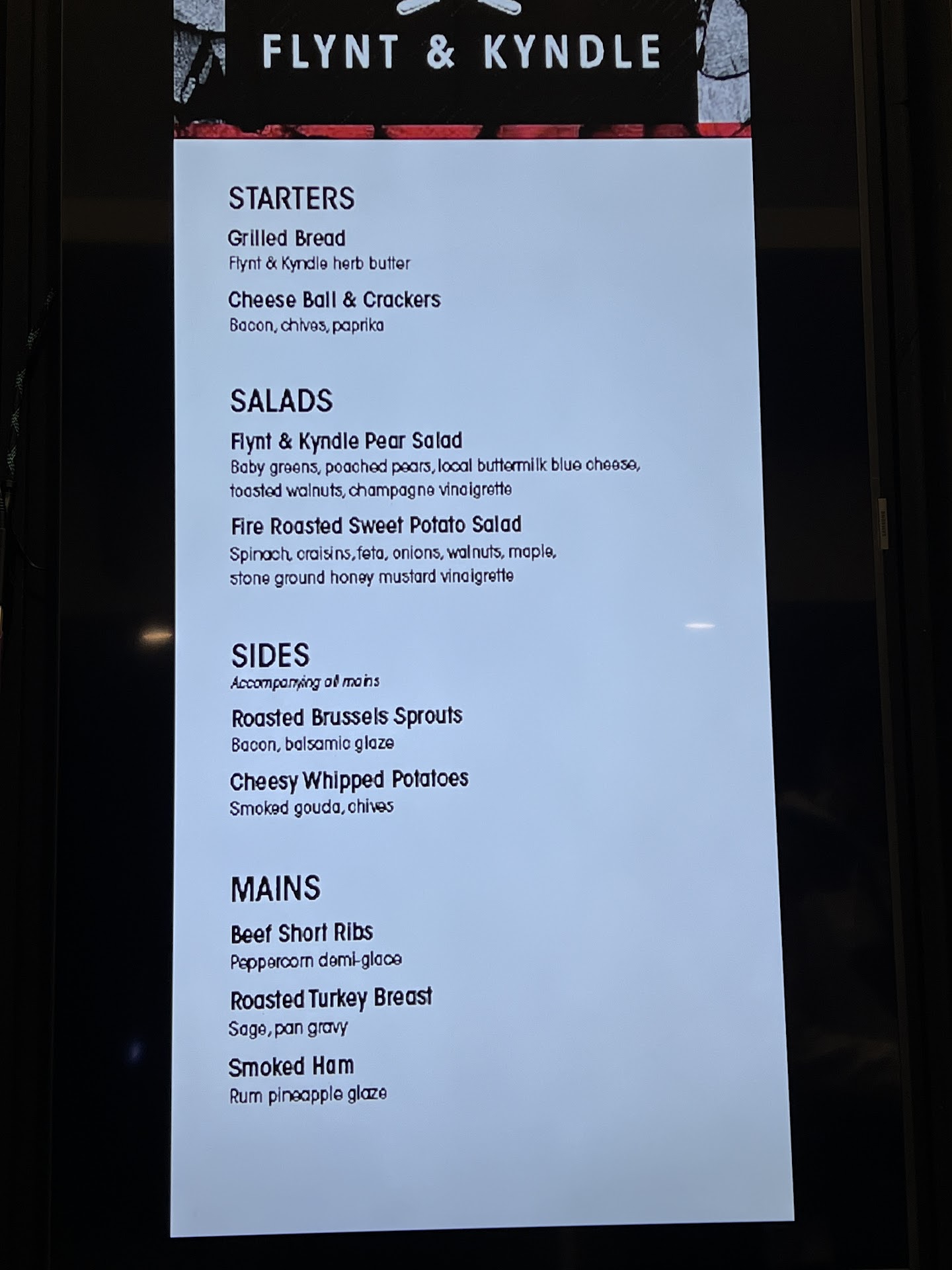 Read moreI made reservations to dine here after the TSO concert. The Menu for the evening looked great ( it was the smoked chicken, ribs, brisket burnt ends.) Looking great and tasting great are vastly different distinctions, unfortunately. I can't adequately describe the food as anything but atrocious. Our appetizers were " Grilled bread" and Buffalo Chicken dip. The bread is in quotations as that is how it is described on their menu but it is certainly not grilled. It was a hard and chewy dinner roll served cold, with a citrus zest spread that was good but also nothing like the menu description of "herbed butter". The dip was appealing but was also cold and the tortilla chips they gave with it couldn't actually make it out of the dip alive. Next came the salads- sadly, in retrospect, these were the highlight of the meal., The spinach salad was dressed well and had great flavor and the apple cider coleslaw was the shining star... The "3 Cheese Mornay Mac N Cheese with breadcrumbs" was NOT a mornay and was chalky with a gritty texture and there was not a single breadcrumb to be found. This last part didn't truly bother me, but at this point I was trying to rectify the menu descriptions with what was sitting on the table in front of my kids.... The penne noodles were a flattened mush... The mashed potatoes and gravy were at least hot. Lastly- we have the under cooked smoked chicken that was bloody red and leaking onto my plate. The smoked ribs were cold on the bone and the burnt brisket ends were a mixture of gelatinous goo and impossibly tough. The server was very pleasant and found a manager for us. After a couple eye rolls from her as I was expressing my displeasure, she comped a couple of the charges, even after I told them, in no uncertain terms, did I want that. I specifically told the manger I would pay full price for everything because I did not want the perception that I was complaining for freebies. I spent decades in the food industry and as a chef, if my food went out like that, I would have been ashamed. Lastly, as I complete this Iliad-esque Google Review, I noticed several other tables with uneaten, full plates of food so I was left with the conclusion that I was not alone in my...
