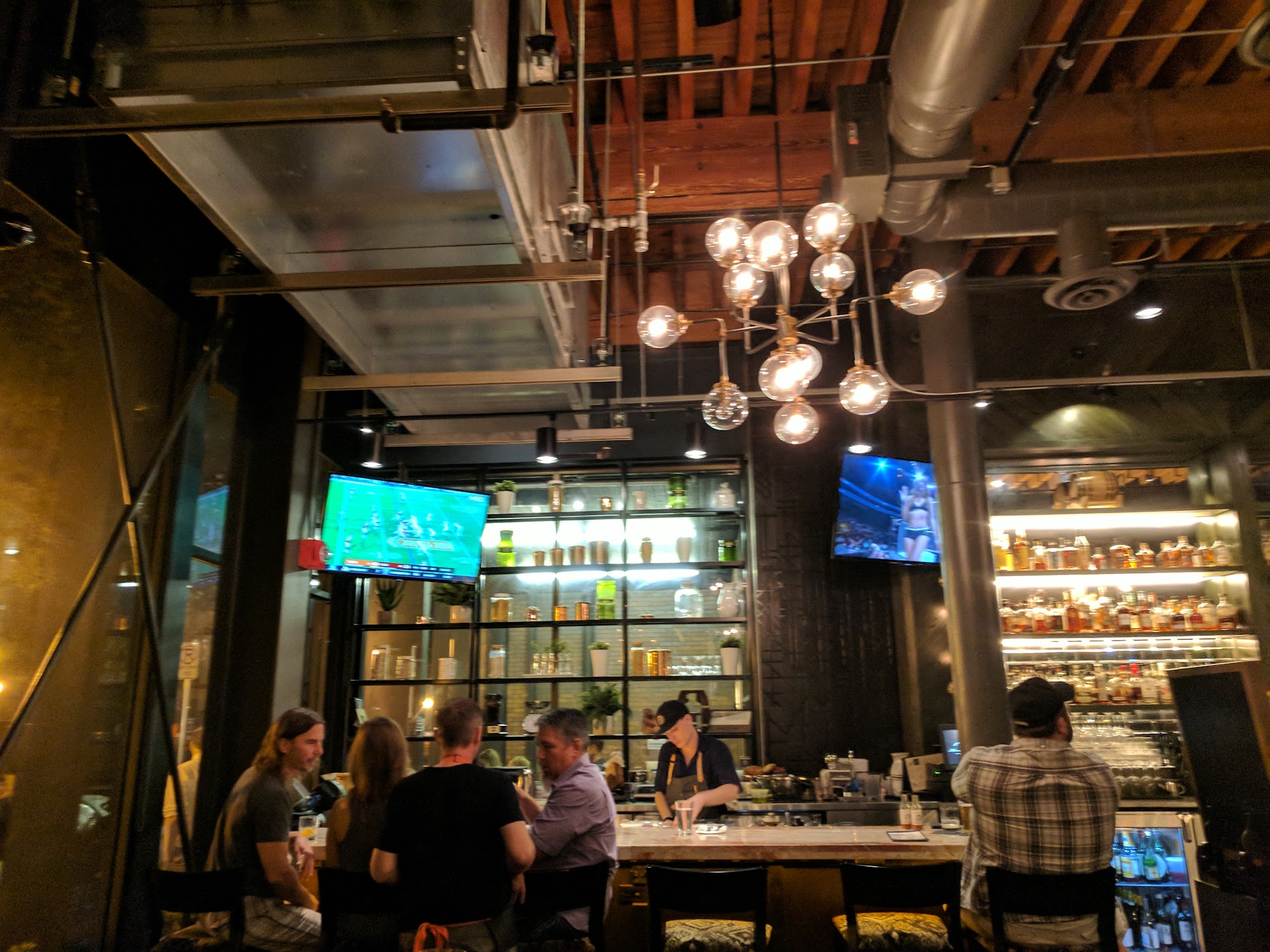 The details: We walked in and were told to sit wherever we liked by a server, we picked one of the booths he had pointed at and got comfortable. About 10 minutes later (he had warned us it would take him a few minutes to get back to us) he came back and asked us to move to a different booth. Not a big deal but strange considering he had told us to sit in any of them. He moved us to the booth closest to the bar but still in the dining area and then disappeared for 20 minutes. Someone else came to serve us water and then another person, who appeared to be the bartender or manager came by and took our drink and food orders. He was great, but his attention was clearly on the increasing amount of bar customers. We finally got our food but several attempts at flagging down our original server for drinks or additional food failed. We did get service from a guy that came by to refill our water and the previously mentioned bartender/manager. I mention this because they were very attentive and great even though we were clearly not in the area (they were handling the bar). At one point I was successful in flagging our original server down and asked him for a drink and an additional order of food, about 15 minutes later I still hadn't received the drink or the food and we saw our server leaving...