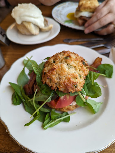 Read moreI ate here last weekend. I had the maple chicken biscuit. It was phenomenal. The biscuit on it’s own was one of the best I’ve ever had. It was fluffy and buttery with just the right amount of salt. The bacon was made perfectly, it melted on the tongue and was so crispy. The fried chicken was awesome and the maple syrup really pulled all of the flavors together. Afterword, we got four different slices of pie to try. All of which were delicious, high quality, and clearly made with care. The marshmallow topping on the key lime pie has a gorgeous pattern on it. The cherry pie has SUCH a good crust, and the cherries weren’t mushy at all. The banana cream pie was absolutely spectacular. The corn custard pie with blueberry compote was not for me, but my dad loved it. The decor in this restaurant is really nice. I love that they use vintage baking tools as a part of their aesthetic. The pink walls are super cute, and when you walk into the restaurant it smells so good. My experience here was amazing and I will definitely be...