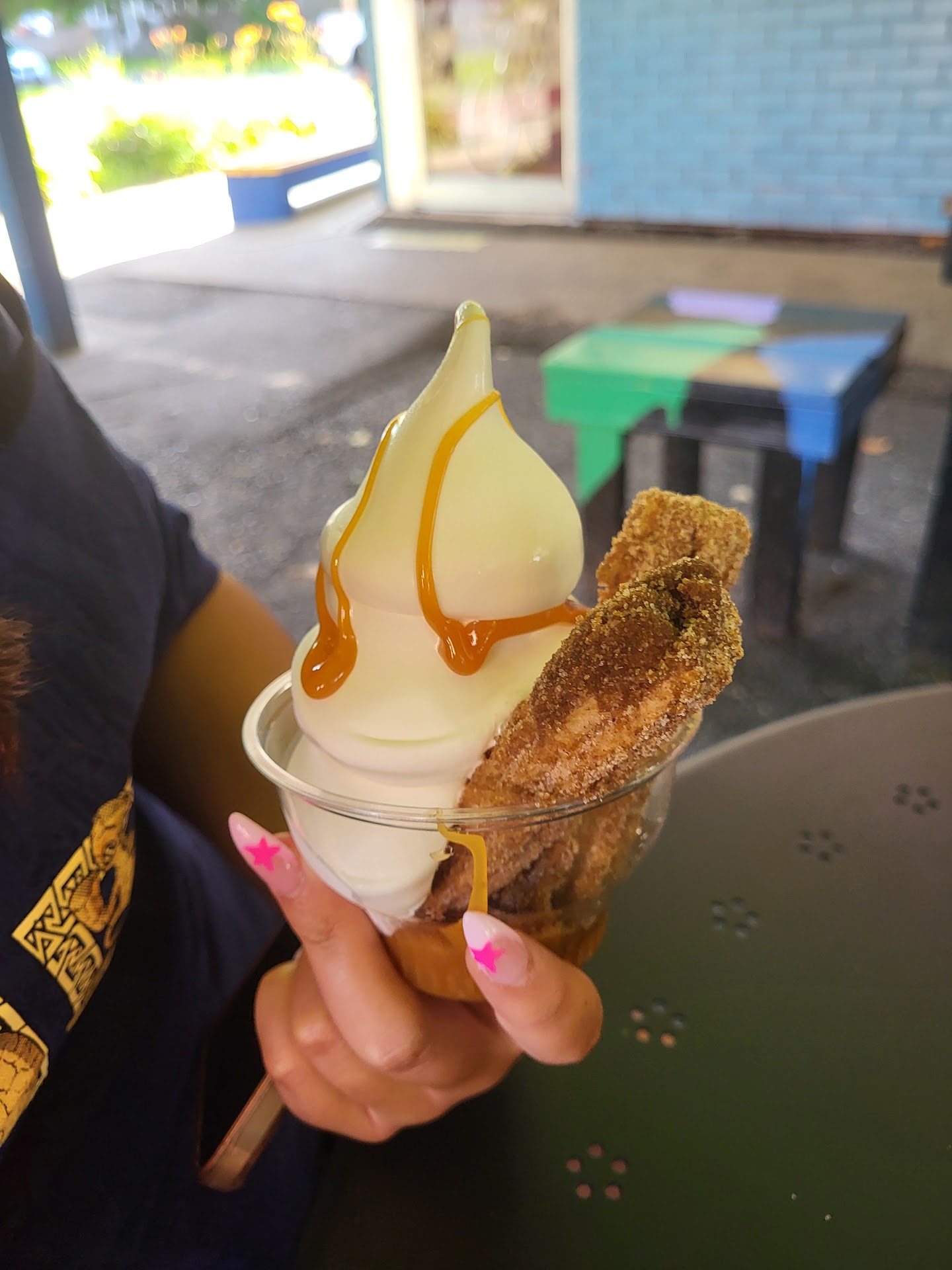 Read moreLittle ice cream shop with a nice, shaded outside seating area. We tried the Affogato (with a churro on the side), the Churro Sundae and the Banana split (with no whipped cream). While the coffee and the churros were really good, the icecream was thicker then a usual soft serve and not very sweet. Overall they have a limited variety as far as toppings and ice cream (no vanilla and chocolate twist) and the day we went they were out of chocolate...