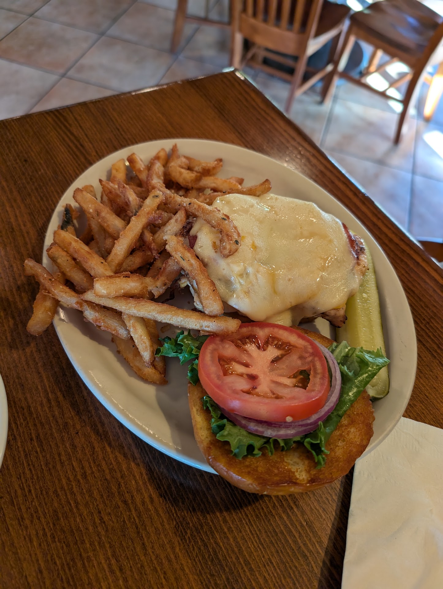 Read moreIt would have been a fine experience I'm sure but the waitress was very timid. I tried to be nice and understanding about most of the issues but our order was kind of all over the place when she set down our plates. We had to switch them around to the right people. It wasn't busy, there were 6 of us so maybe it was hard to figure out where and what we got, fine. But then my order was jumbled with my brother-in-law's order. He got no tomato, no cheese bacon burger. I got a chicken sandwich with cheddar cheese instead of swiss. Somehow his burger ended up with cheddar cheese and no bacon, my order ended up swiss, and bacon. I didn't think my sandwhich even came with bacon. Anyway, I tried to let her know that our orders got jumbled and maybe they could make us some new sandwiches. I thought I was clear, precise and nice about the whole situation but she was really sassy with me and told me that it was my fault that our orders got mixed up. I get people make mistakes but I did not appreciate being told that I was in the wrong when I was very clear in what I wanted and beside that fact that I didn't deserve to be sassed at after I was nice to her the whole time. I assumed she was either having a bad day, maybe it was her first job... either way. Maybe it was a good learning experience, I don't know... good luck and hope you have a better day tomorrow. Treat others...