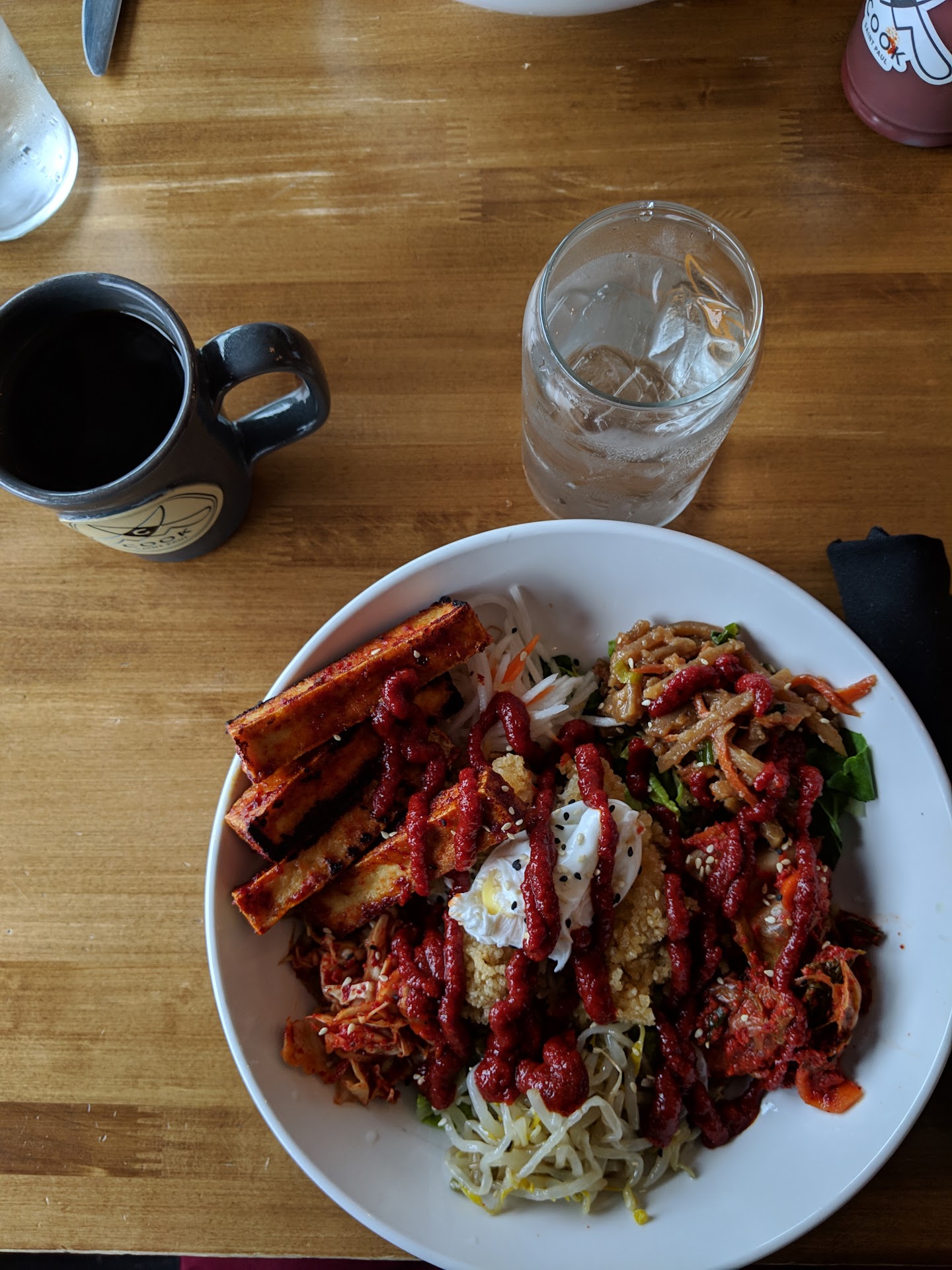 The Bibimbap is a hard pass. Made mostly of romaine lettuce it lacked any of the banchan that makes this dish a Korean staple. The bibimbap had a small amount of veggies and kimchi and comes with steamed or crispy rice, this was topped by a nice sunny side up egg and a bottle of gochujang on the side. The taste, texture, and consistency left us feeling like it was a waste to get a...