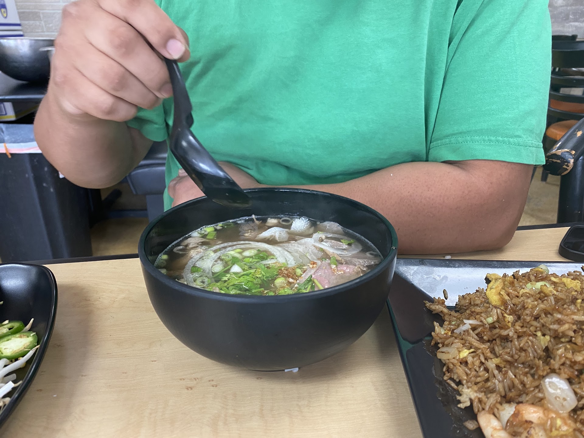 Read moreMy husband and I went during lunch time on a weekday and wanted to try a new place new we haven’t tried. The place and environment was nice and simple. Beside the leaking ceilings the place seems clean. Why, because our waiter asked if want to move to another table because they didn’t want the ceiling tile to fall again. Again??Overall, food quality was good and portions are reasonable. The services was minimum, only, minimum because I believe our server was very underage and less experienced. But was handling the front plus waiting on tables solo was holding the fort well. We ordered, pho, spring roll, pork belly, shrimp fried rice, sticky rice and coconut boba tea. Pho broth was aromatic and flavorful, but keep in the the size is what I would consider kids or small. Pork belly was just cooked just crispy enough almost like a jerky but still juicy (sweet) comes with sweet spicy sauce. Spring roll was good and the peanut sauce that comes with it is perfect too. Sticky rice is good no dried portion at all and coconut bobo a tea was good too. Shrimp fried was good too, not too oily or mushy at all. Their prices are reasonable, we thought! Please keep in mind, no parking lot, must park on the street or residential parking. This is a mid-size shop, so party of 20 or more might not recommended. Overall experience, I would go back but probably...