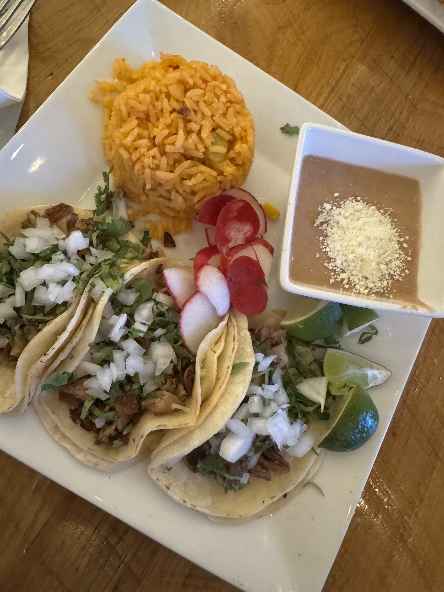 I got Tripa tacos + beans and rice ($14.99) and churros ($8.99). The restaurant appears to have different specials going on all the time. For example, the combo I got for $14.99 was a Monday special. The tacos were delicious and the sauce added a nice kick. I don’t believe the sauces are something they typically give out, as they asked us if we wanted any hot sauces and if so, which sauces we wanted (we asked for all 3). Churros were tasty!