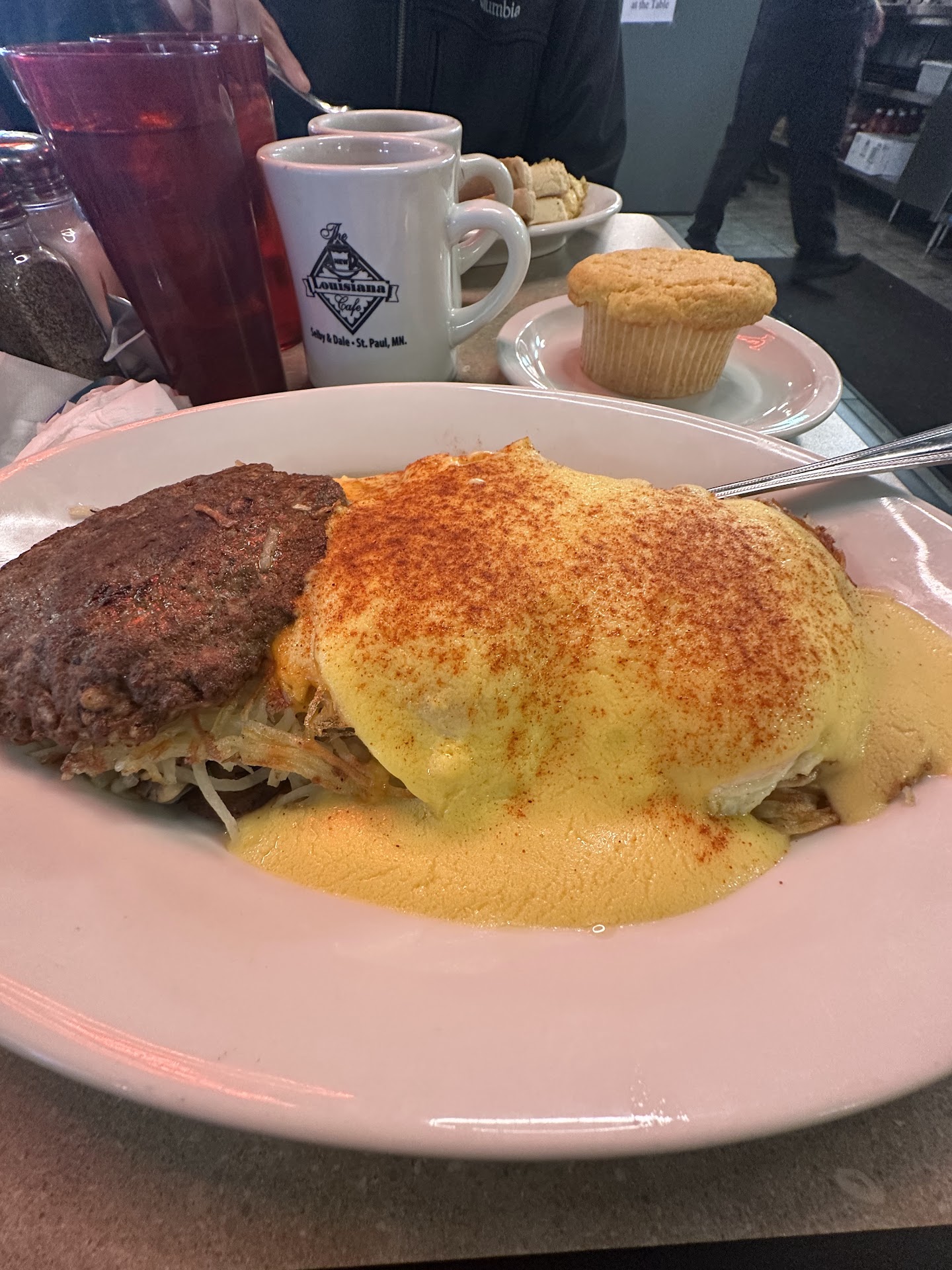Read moreWhat a disappointment!!! I live in a South Metro suburb, and whenever we find our way up in St Paul in the morning we try to stop at Louisiana Cafe for breakfast. It has been our go-to restaurant for the last couple of years. Sadly, this trip will be our last! When we arrived we found a booth with the restaurant being approximately one-third full. There appeared to be two servers working the floor. After a few minutes our server brought our menus and shortly after brought us our beverages. She was pleasant! Once we ordered our food she did not return to offer refills on our coffee until she brought our food. If she would have been busy we would have understood, but she was standing behind the counter some of the time. My omelet was overcooked...the eggs were dry and hard! The most shocking was the prices!!! I typically order the Cajun breakfast, but it was $16.50 without any meat. If I wanted to add the andoule sausage it would be an additional$6.75. Wow...that is a total of $23.25 for breakfast for one person!!! I know costs have increased, but this is ridiculous!!! We can go to the Original Pancake house and get a delicious OPH souffle omelette for $13.25 as an example! Their biscuits and gravy price was $16.50 as well! There are too many wonderful places to eat in St. Paul... Guess we will...