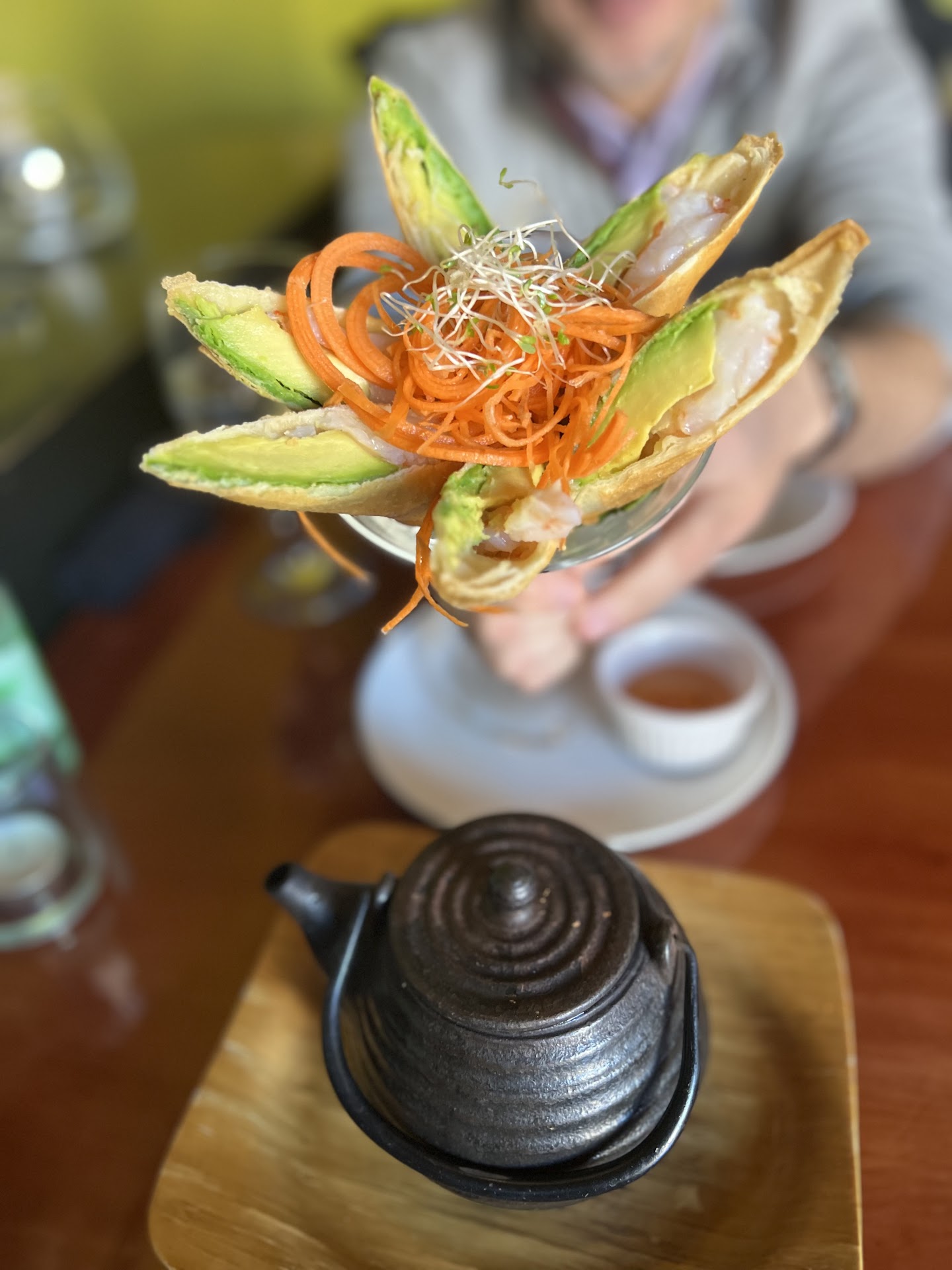 My wife and I ordered pot stickers for an appetizer, one of her favorites, and I will eat them. However, when they were delivered to our table, crispy and hot, I took a bite. I now have a place to go that pot stickers are a favorite choice for me. Perfectly cooked and a side of peanut sauce that is mouth watering. For our main course, my wife ordered the Shrimp and chicken basil, I ordered the Green curry walleye. The portions were fantastic! The presentation was beyond pleasing. Both meals had a slow rise in heat, very slow, that allowed us to enjoy the flavor of the food without destroying our pallet. The walleye was crisp and the shrimp were large. The vegetables were fresh and crisp and the whole dish was NOT drowning in sauce. It was a fantastic portion for the size of the meal.