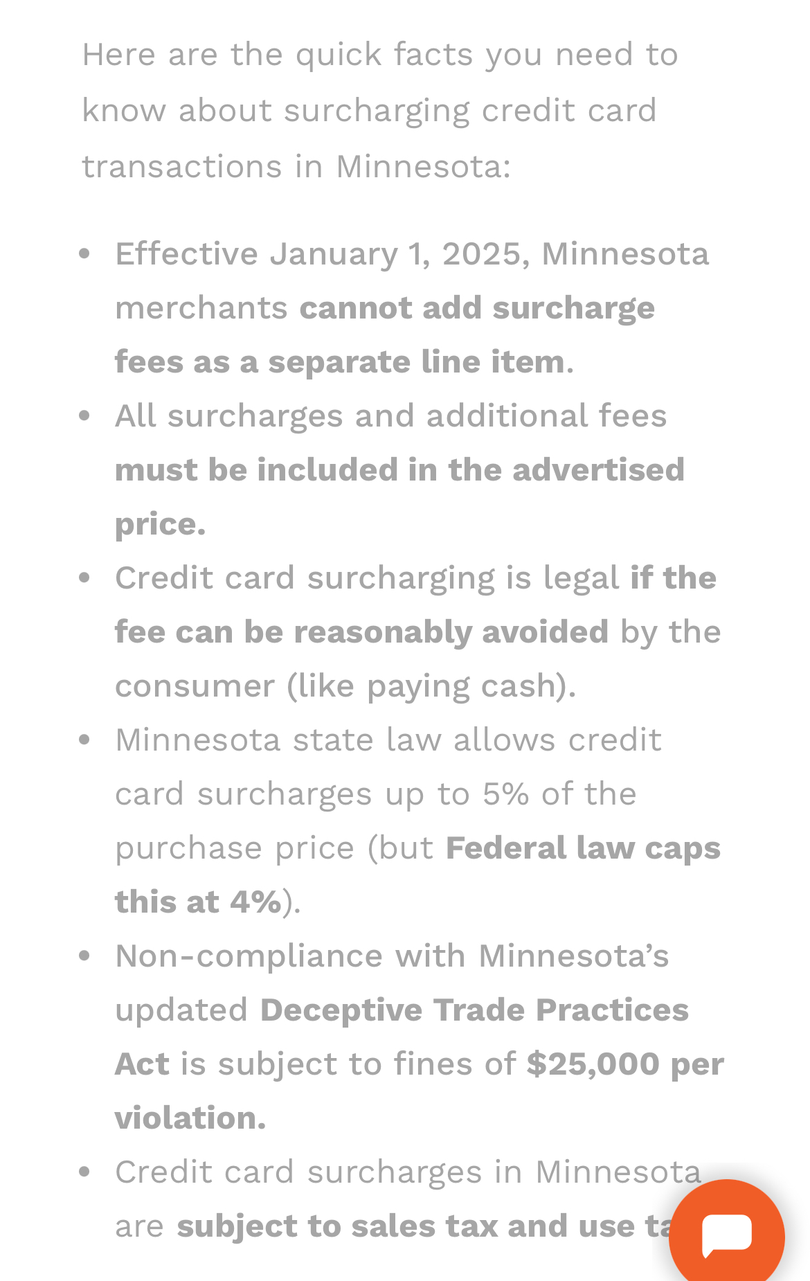 Visited Onās kitchen tonight and am honestly sad to have to give a family owned business 1 star. The food was great but I cannot allow them to continue to run their business with illegal practices. Everything was great up until our group got our bill. I noticed that there was a credit card fee added to our bill even before they knew what we were using to pay. My group was confused about this, so I went up to ask. When I got to the register the lady in the kitchen rudely says ādo you need something?ā I told her I was confused about the added credit card fee on the bill and stated it was illegal for them to charge us to use our own debit card. She snarked back and said something along the lines of āif you have anything that says visa, you get charged that fee.ā I knew this was incorrect so I pulled up the information on Google and went back up to the register. I told the server to leave the charge on my receipt (because I wasnāt going to continue arguing) but what they are doing is illegal. He laughed like I didnāt know what I was talking about. This business, Iām assuming has been charging their customers to use their own money, which is illegal in all 50 states. I did give her an opportunity to fix the situation but all she gave was a snarky attitude. Also FYI, starting January 01, 2025, businesses are no longer allowed to charge itemized line items like surcharges and service fees. Based on the owners responses to other reviews, I have also attached pictures of the law but you can also google the new bill HF 3438 and the...