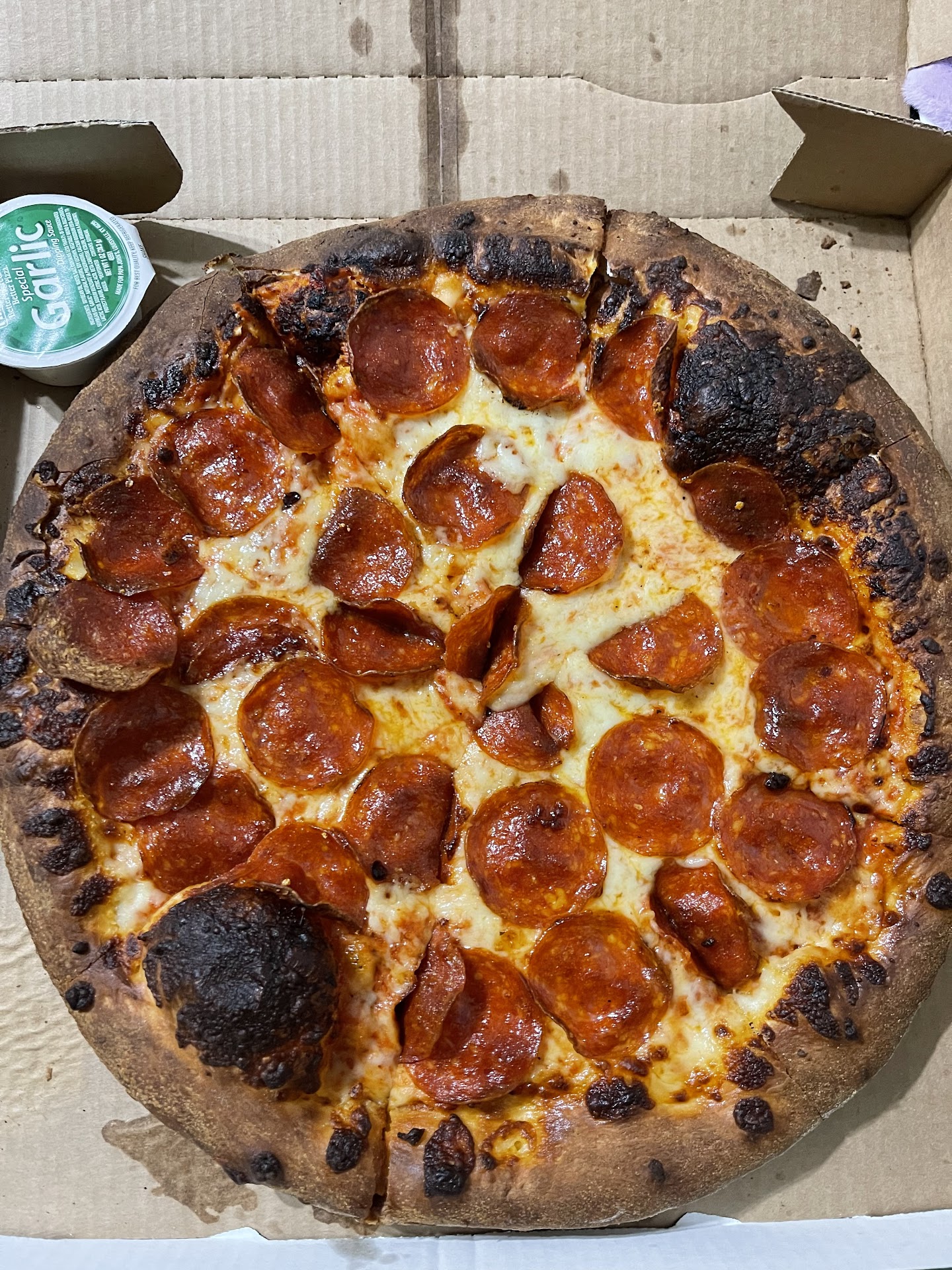Read moreOctober 13th I ordered a pizza and wings. Good pizza, bad wings. I asked for well-done wings, it wasn't even close. The driver I already knew and texted him that they were bad he said to call up anytime in the near future to get your wings for free. It was the same manager with the same tone of voice which is pretty ridiculous. I had to order something to get my free wings... Isn't that a little ridiculous? Besides all that good people except that manager. So with all that said I will still order from there but hoping when he is not working. Thanks Dan! Such a nice manager... Oh my effing God!!! They did make my wings well done very tasty. The pizza I ordered Canadian bacon and extra cheese it just got delivered and it's Canadian bacon with pineapple!!! That manager is not in the right state of mind... The driver was a really nice guy! But that manager? How is he still...