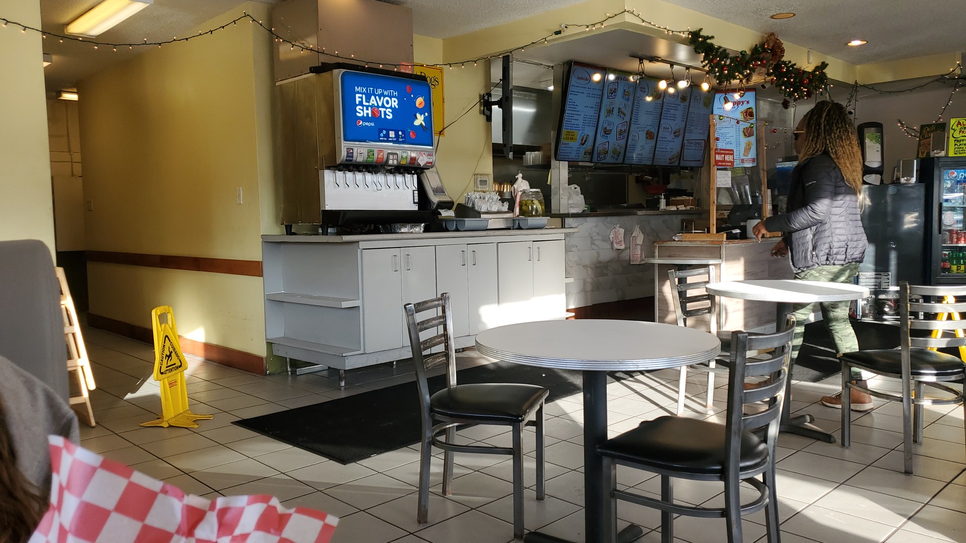 Yet another customer went up and asked for mayonnaise. She told him "pepsi products" and pointed at the drink machine which was now working. No, I want mayonnaise! "It's working now" No! The white stuff, Mayo! Mayo for my catfish!..and again the cook had to come out and figure it out at which time she gave him one single...