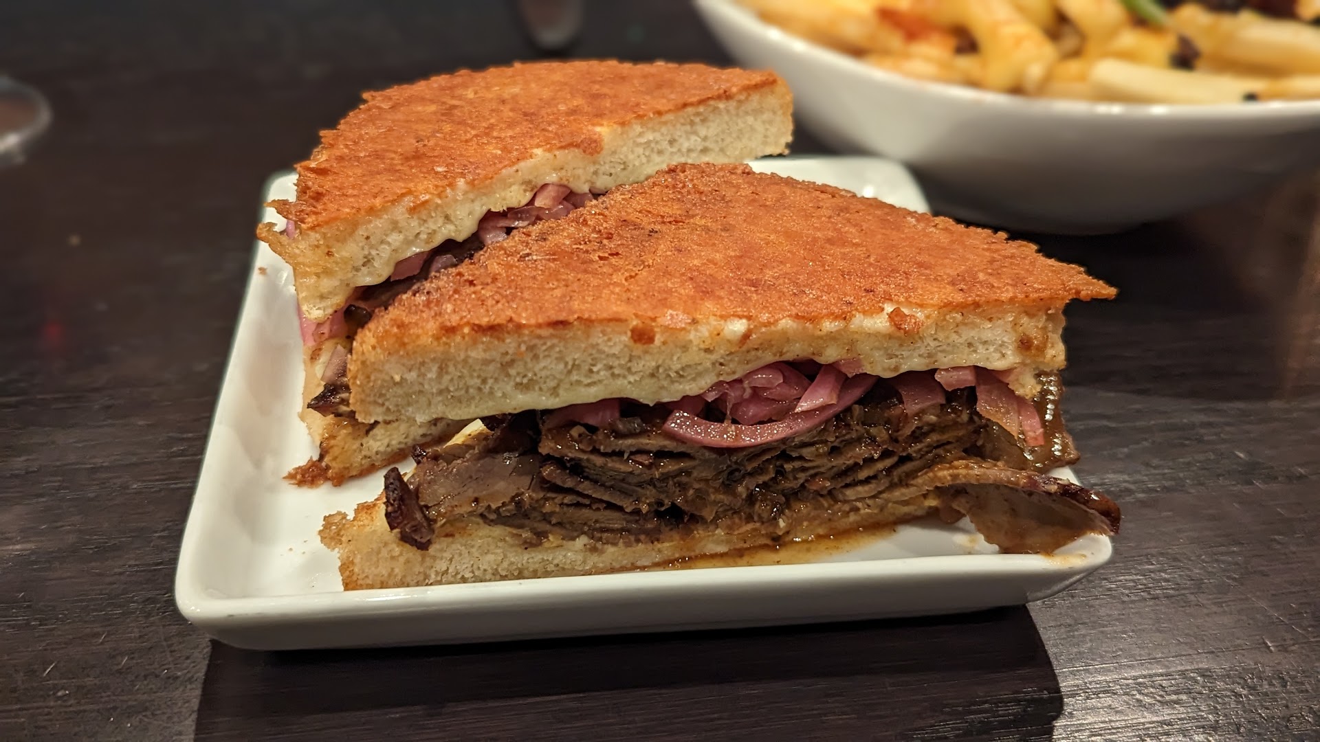Secondly, our server, who was great, didn't explain to me that getting fries with my burger would be a six dollar upcharge (they were a side of fries) and the special aoli that came with the fries was another three bucks. First time in my life I've paid three dollars for anything in a ramekin.
