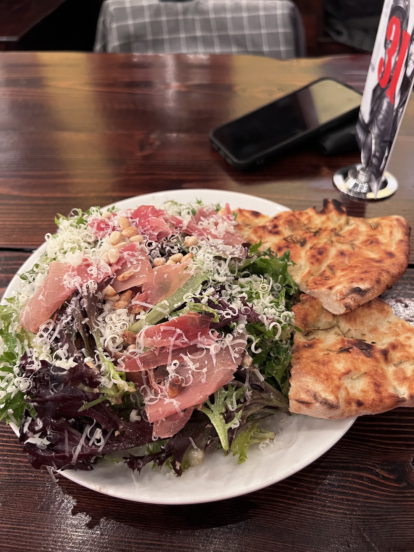 Things I didn't: The heavily salted focaccia we ordered as an appetizer was nearly inedible. As I mentioned earlier, our server quickly delivered us a replacement when we shared our concerns about the level of salt. While the kitchen corrected the salt level, they badly burned the rosemary topping which left the dish with an acrid aftertaste.. As I mentioned in the intro, the rugala pizza was a letdown compared to other Neapolitan pizzas I recently consumed. I know the crust in the center of this style of pizza is going to be softer than American-style pizza, but bottom of the crust was undercooked, giving it a doughy taste. Placing the arugula underneath prosciutto contributed to a sogginess of the center of the pizza and made the greens mushy as they steamed under the blanket of meat. The crust also would have benefited from a little more char along the edge of the pizza.