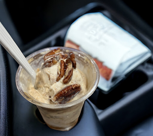 I left with a cup of excitement filled with Pecan and black walnut ice cream, Heath, Carmel, a handsome dash of butter finger crumbles, and a canopy of pecans!