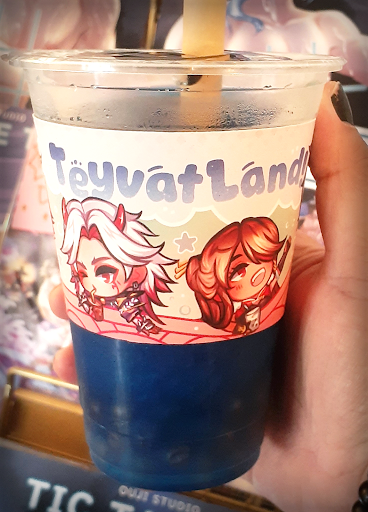 During my visit, the Teyvatland Genshin event was happening. This was one of the highlights of my visit. I had been to Sencha's art gallery openings in the past but this event felt like a mini artist alley which I liked. The artists had super awesome anime inspired art, were very kind, and had fun activities (trivia and toploader crafts) for my friends and I to enjoy while we sat with our drinks.