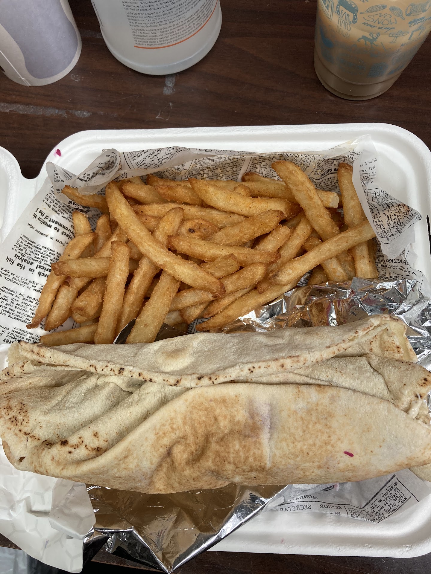 I'm giving 2 stars because their fries were tasty (not too crispy). The gyro meat and falafel also tasted better than the sad chicken shawarma.