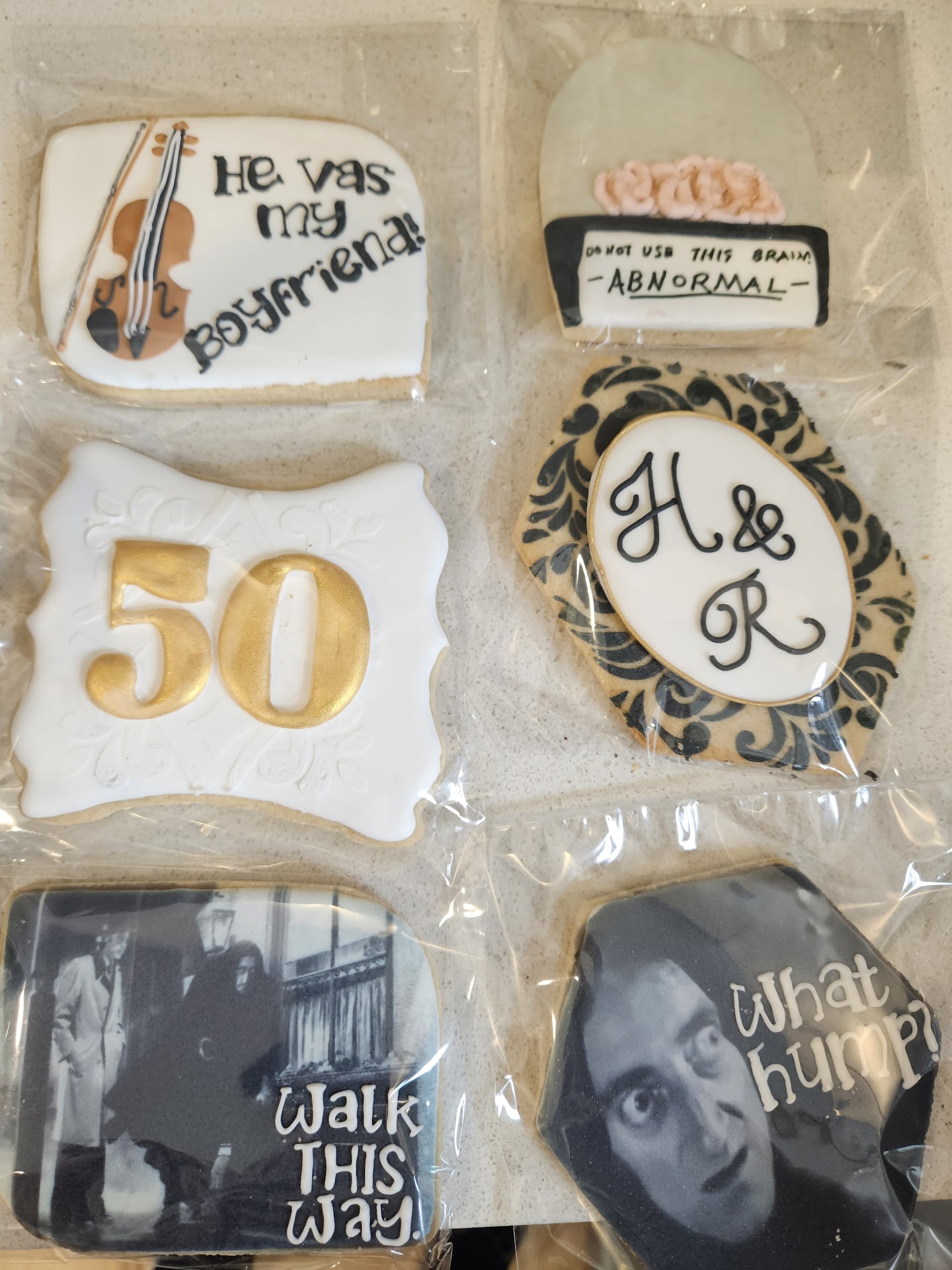 Read moreOrdered 2.5 dozen cookies for my parents' 50th wedding anniversary. The cookies were flawless! The design ideas I gave her (the theme was the classic comedy Young Frankenstein) were executed perfectly and everyone at the party was so impressed. They aren't the cheapest but they are big and thick, definitely worth the money. And can I also say, completely delicious! Sometimes you have to sacrifice taste for looks, but not here. Pickup and communication were smooth and easy. Can't wait to have an excuse to order...