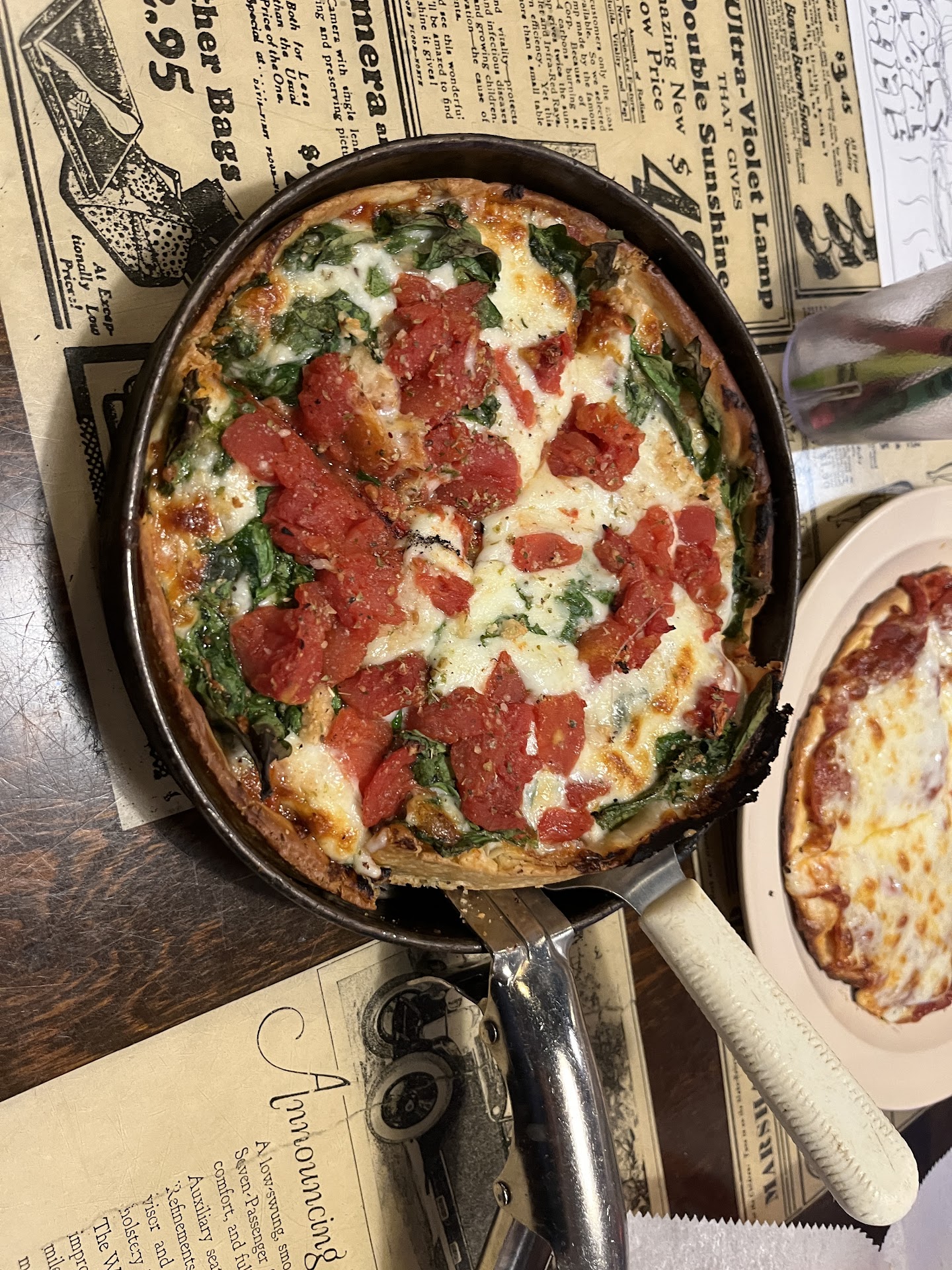 Disappointing. Being from Chicago and also liking New York and Detroit style pizza, it feels like this place barely knows what pizza is based on my experience here. I ordered the BBQ Chicken pizza and it was absolutely bizarre. They clearly prepared it in such a way that they cut the crust before putting any toppings on it, and nowhere on the menu did they say it would have anything more than chicken and BBQ sauce in addition to the normal cheese and tomato sauce. But when I got it was covered in an absurd amount of cheese, olives that clearly came from a can, lettuce that can only be described as “not very fresh” and a stupid amount of sliced tomato, as well as some onion and other stuff I can’t even identify. I don’t mind a lot of these toppings, but lettuce on pizza seems wrong and the taste of the olives they used clashed horribly with everything else, and I normally love olives on pizza. The BBQ sauce was vaguely spicy but not sweet, and the lettuce was bitter. All in all, it was way too much to put on a pizza and despite only being 10” I couldn’t even eat half of it before putting the rest in the fridge. When I ordered I thought the pizza seemed expensive but given how much was on it I understand why. I have yet to find pizza I like in the twin cities and I was really hoping for better here.
