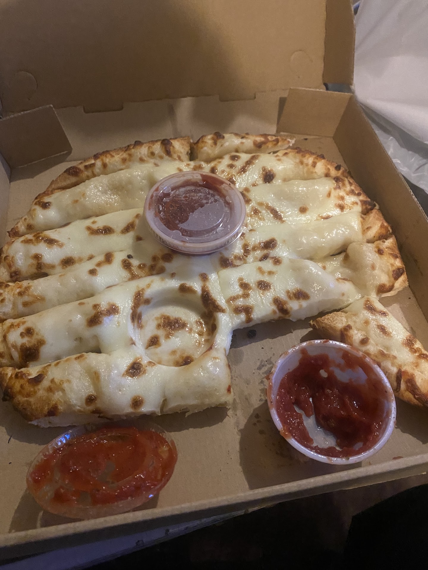 Read moreI had a coupon and decided to try carry out after a Friday night. We order a medium taco pizza over the phone. The ambiance was interesting: a large painting of horses, a single pair of wireless headphones sitting on the counter with a handmade price sticker that said $40, and a half eaten birthday cake with partially eaten slices in the kitchen/back room viewable from the pick up area. This place was either going to be an awesome dive or regrettable experience, and unfortunately for us it was the latter. The taco pizza had marinara and taco meat under the cheese. There was a separate container that had fresh lettuce, onion, tomato, black olives, salsa, and a singular tube of sour cream (which did all appear to be fresh - wouldâve made a nice salad). The crust was thin and had black char on it, but was not burnt. The char appeared to transferred from the pan, likely from not washing the pan after each use. My partner and I both ate a few slices because we were very hungry, though the flavor was not good. The marinara & taco meat tasted weird together, and there was too much marinara so the toppings sort of just slid off. Even in the slices that didnât have much of the black char, the texture of the crust was off - it a rubbery/chewy. I honestly wouldâve rather had a frozen pizza or fast food burgers. We ate less than half and threw out the rest because we both had stomach aches. There are lots of pizza options in the Twin Cities, and Iâd rather have just about...