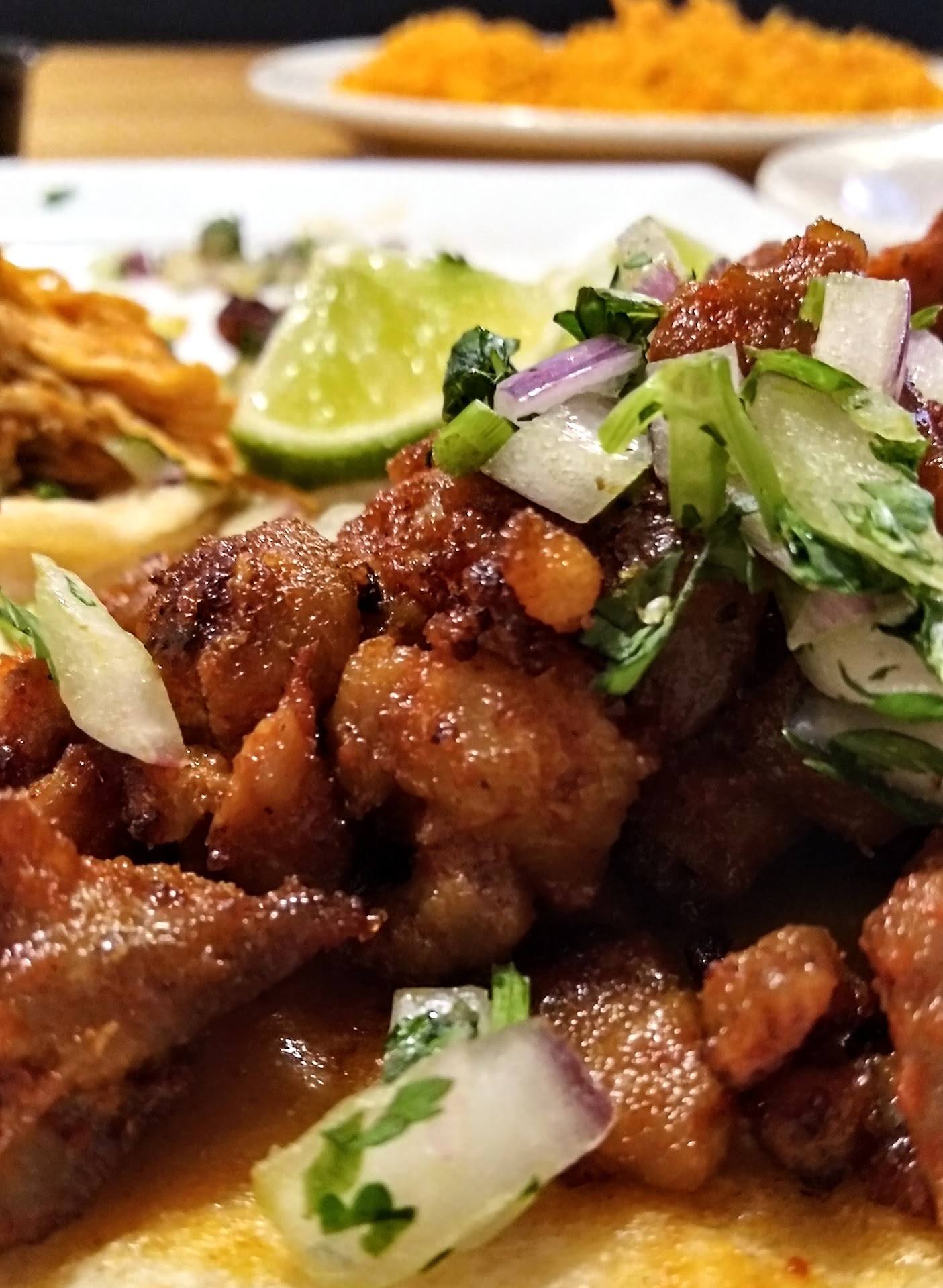 Went here for a late lunch today. I had the street tacos with al pastor meat (sweetened pork with pineapple chunks) and my husband had a cheeseburger and fries. I got three tacos, loaded with meat, onions and cilantro, refried beans, Spanish rice and lime wedges. Our server, Kris, recommended the meat and he was spot on! It was excellent. The rice and beans were also very good. My husband's burger was cooked to a perfect juicy med rare, and had wonderful flavor. His fries were the skinny ones that we love and were super good. Our server, Kris, was excellent! Very neat and clean in the restaurant and in the bathroom. I highly recommend this restaurant. Their prices are a bit steep but so is everywhere else these days. Also the portions are so huge, we both brought home a bunch of leftovers.