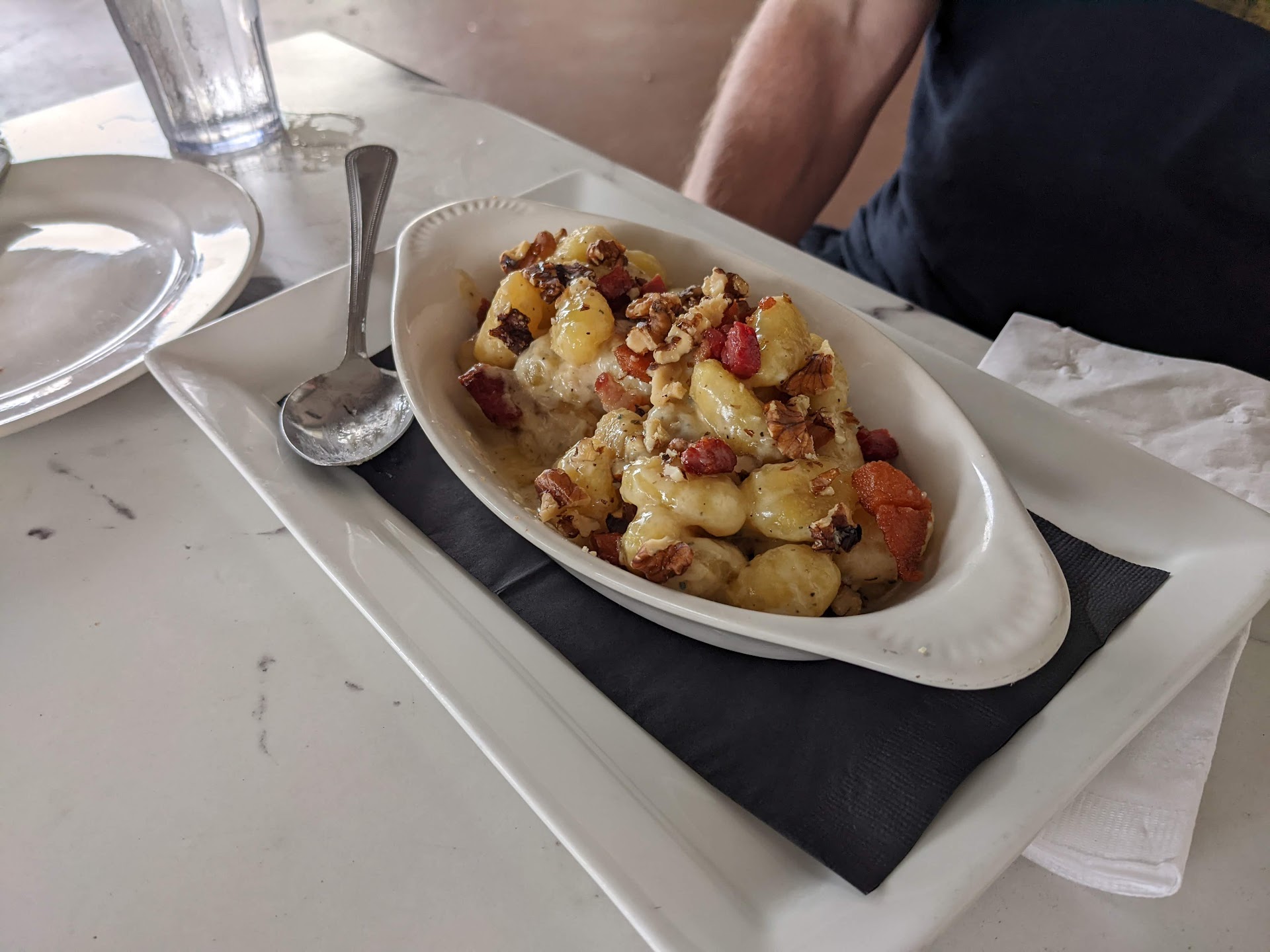 For entrees I got the cacio e Pepe with a side of meatballs. Meatballs are definitely some of the better meatballs Iâve had here in StPete/Tampa. The meatballs bathed in their delicious marinara sauce. Theyâre fairly big in size and pack great taste. Cacio e Pepe was delicious. Noodles were cooked just right, and the light white sauce was perfect, not too salty not too bland. 5/5