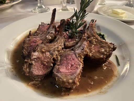 Okay, the food... WONDERFUL. I got the rack of lamb with veggies instead of pasta. It would usually have mashed potatoes and spinach but I asked if I could get something other than the potatoes and our server mentioned I could go with double spinach. GLAD I did! It was great. I ate everything on the plate (except the bones) and it all followed my diet pretty close. There were some toasted breadcrumbs on the grilled rack but those really added to the rustic flavor. Meredith DOES NOT like lamb and I had her try a bite and she loved it.