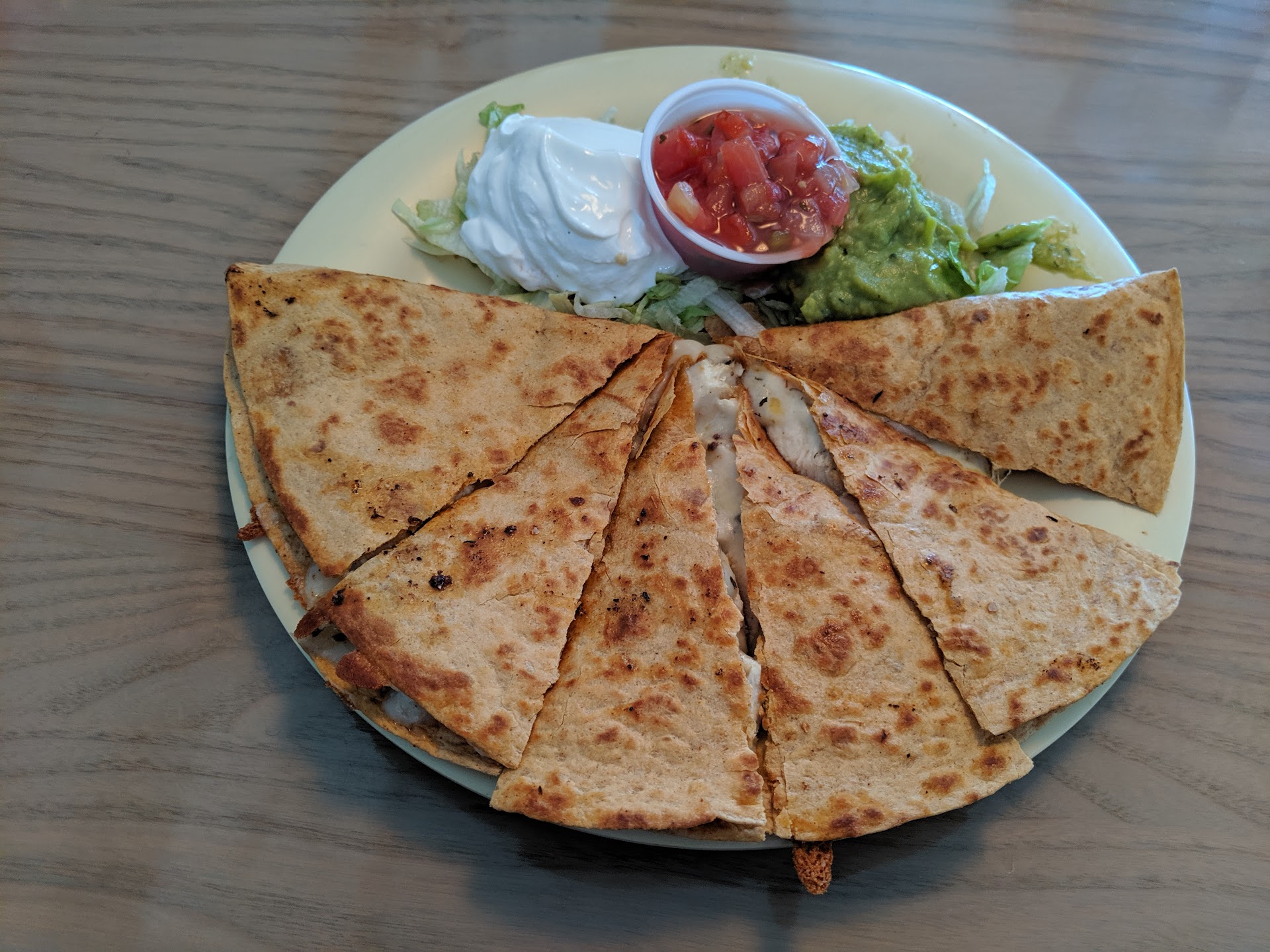 It was super busy, so it took some time to get our food. I ordered a quesadilla because I didn't feel like ordering off the "hand held" menu that I know I couldn't actually hold in my hands. I expected it to be greasy as well, but I didn't feel like walking out in the sun to go elsewhere for lunch.