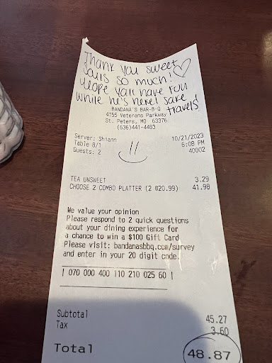 my fiancee and i LOVE going to bandanaās. our food is always amazing, and theyāre super quick with it. thereās never much of a wait. however we had an experience last night that made us rethink ever coming back. we had Lori as a server, and it was the worst experience i have had at bandanaās. i understand that servers tend to want to sweet talk their way into a bigger tip, but she kept badgering us like an annoying grandmother, despite the fact that we were very obvious about not wanting to have a conversation. we were trying to enjoy a meal together, which is something we donāt get to do often with my fiancĆ©es work schedule. but that part wasnāt so bad, itās even understandable. the part that i donāt understand is how Lori thought it was okay to comment on how much/how little my fiancee and i had eaten. she did not pay for our meals. she does not know our history with food. she is a stranger with an opinion she needs to keep to herself. i am recovering from an eating disorder, and the words that came out of her mouth were extremely hurtful and triggering. because of Loriās behavior, we will likely never come back to bandanaās.