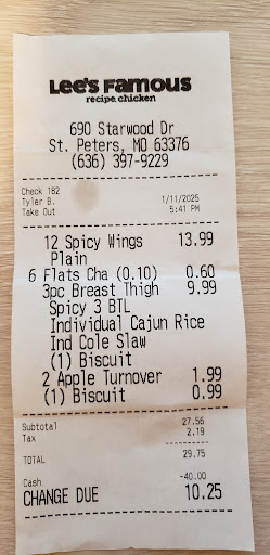 Read moreStopped in the drive through on Friday at around 7:50pm and was not sure what to order so I grabbed a few different things. I got a 4 pice chicken tenders dinner, wife said that was really good and fresh, crunchy skin. Got a spicy chicken sandwich, and I found the spice was nice and hot, the chicken seemed fresh, however the top bun was completely hard and stale, must have been sitting for a while. Ordered a 3 piece combo, and for and l that the skin was not crisp but really chewy. It is as of the chicken had been cooked a while ago and was still sitting in a box and getting cold. I also ordered a chicken gizzards meal and found that it was also chewy and not fresh. I spent around 23 dollars total and was fairly disappointed. I hear that this place has got some great food, but unfortunately if you show up late in the day your going to get what is left and not fresh...