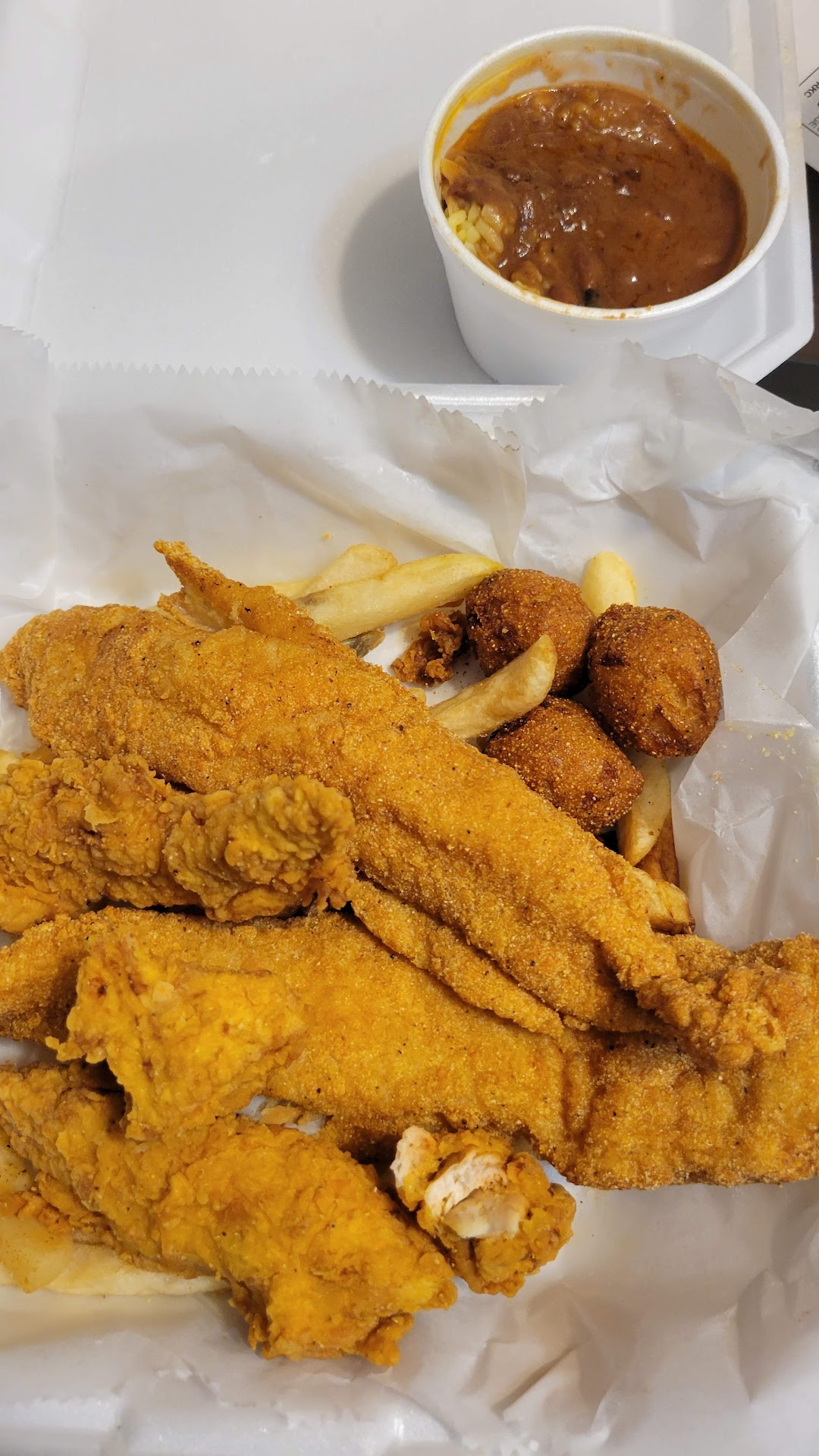 Read moreAte here tonight for the first time. Greeted right when we walked in the door. There was four of us. They gave us menus to take to our table (we sat where we wanted. ) We figured out our order then went to the counter and placed our order. We ordered the family fish dinner - 12 pieces of fish and 2 large sides for $29.99. We got fries and cole slaw as our sides, and ordered a side of hush puppies. Food came out really quick and was hot. The girl that kept coming to our table to check on us was super nice, SUPER polite, friendly, and very appreciative when we told her we appreciated her excellent service. We got plenty of fries for four of us. The slaw was supposed to be a large side but was only two small containers, we each could have eaten one (too small for four people. We each got about 3 tablespoons of slaw.) The side of hush puppies was 10 hush puppies for $8 and they were good but very small. 3 of them are the size of one at Captain D's. So the four of us each got two hush puppies, with two left over. We all wanted more. The fish was really good, the slaw was good (creamy, good flavor,) the hush puppies were good. We loved all the food. We just wished the large slaw was really large (family size) for four people and not so small, and that the hush puppies were a lot larger and more quantity. It was cold in there so we asked them if they could turn off the ceiling fan by us and they did. They played really good music, classic and good, and not too loud either. All of the staff was super friendly, we loved that! They genuinely care and want your feedback. It's evident they are there to serve good food and want to please their customers and do a good job. That they did! We will definitely be back, and will share our positive experience with others. I wish I would have thought to take pictures of the food. I'd you love fried fish, you will not be...