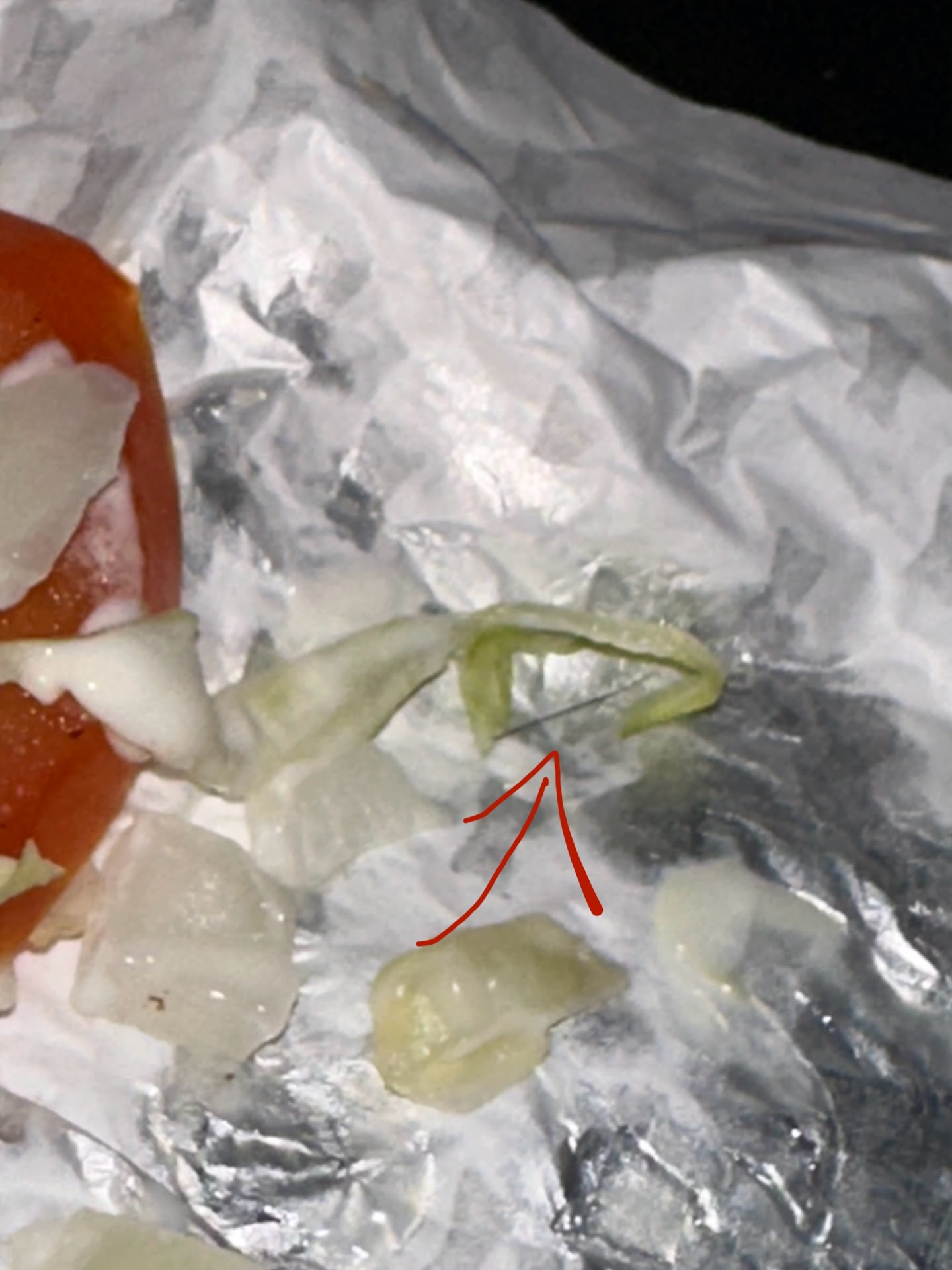 Girlfriend and I went through the drive through, I asked for EXACTLY THIS “#2 With a large Strawberry limeade and Large fry” Lady at the drive through didn’t respond for roughly 20 seconds, fine no biggie there’s a few people in front of us, I’m sure she’s busy, not a problem. Then proceeded to order a second, #2 with no onion, Large Dr. Pepper, large fry” Another 15-20 second wait for a response, not a problem, I understand. I’m told to pull forward, eventually we get to the window, I hand off my card, I’m then handed back what looks like 2 medium drinks. Both are the correct drink. Wrong size. I don’t say anything just to avoid conflict, not a big issue. Then we are handed our food, check the bag, see 2 burgers and 2 large fries. We get home, take out the food, my girlfriend checks one of the burgers and it’s a Single. Awesome, already very annoyed with this situation. We then proceed to eat the food, and find a hair inside the lettuce of my burger. Absolutely disgusted. Here is an image of the hair after pulling it and the lettuce out...