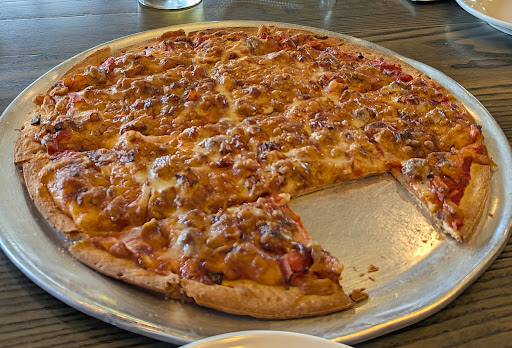 My husband and I came here for an early dinner on Father's Day. I had called ahead to see how long the waiting line was and was told that a party of two would have no waiting. When we arrived at 4:15, the parking lot seemed pretty full and we were convinced we would have to wait. But we were able to be seated immediately and we had our choice of table style (booth, table, high table). Our waitress, Deonna, was at our table very quickly to take our drink orders. My husband wanted a beer and she knew all of the varieties that they had. She also informed us of a Father's Day special with beer and an appetizer that was available. (My husband ended up not wanting that option but it was nice to know it was available.) We got our drinks very quickly. Deonna made sure that we had refills quickly, either by asking us or by our request. Instead of a traditional appetizer, we decided to get a small 12-inch pizza as an app. We chose hamburger and tomato. It had a thin, St. Louis style crispy crust, and came out steaming hot. I thought it was delicious. My husband thought that the bottom section of the middle of the crust could have been crispier, but my feeling is if it had been cooked anymore, it would have dried out. The crispiness around the perimeter of the pizza was satisfying to me. The toppings were plentiful, spread to the edges, the sauce was good, and it had that nice baked brownness on the cheese topping. Deonna had taken our entree orders already by this time. This woman did not even write our order down. She memorized it! I have to admit, I was a little worried that something might come out wrong with our order. But our main dishes came and everything was perfect. My compliments to you, Deonna! My entree was whiskey glazed salmon, with a baked potato and a side of broccoli. Everything came out hot. The whiskey sauce was absolutely delicious. It did not taste alcoholic (so don't go for it if that's what you are looking for). But it did have a nice tangy, and yet slightly sweet flavor (and I do emphasize slightly sweet). The baked potato was the kind that you always want to get in a restaurant. The potato was the perfect consistency to cut with your fork and they actually went to the trouble of sticking salt to the outside of the skin. The broccoli was just like I like it, cooked soft enough that you can bite it and chew it easily. My husband got Cajun shrimp pasta and a Caesar salad. The pasta dish was a nice size portion. My husband said there were lots of good sized shrimp in the bowl. The cream sauce was spicy enough for him, but not so spicy that it was uncomfortable. He completely enjoyed the dressing on the nice sized salad. During our dinner, it was not just Deonna that waited on us. The manager Josh came by to ask how everything was. One person brought our pizza. Someone else might take an empty dish away. Someone else would bring our entrees. I appreciated that all of the service staff were helping each other. It felt like all of our needs were being met because everyone seemed to be chipping in. We had just spoken with Deonna to ask for more water. After she left, we realized that we should have given her a dessert order. One of the staff realized that we were trying to get her attention, and he went ahead and took our dessert order. We splurged on a large warm chocolate chip cookie, covered with three scoops of vanilla ice cream, and decorated with real whipped cream and generous swirls of chocolate and caramel syrups. It was only $5.99 (which I think is really reasonable for a restaurant dessert). My husband and I split it. I ate the cookie and he ate the ice cream. The cookie was big, warm, gooey, and had the ice cream on top of it. My husband appreciated that the ice cream was not all melty, but seemed like it had just been scooped and was still hard, although the bottom part was a little melty because it was sitting on top of the hot cookie. I had to use the restroom towards the end of dinner. It was clean and stocked with enough soap and paper towels. Even the full length...