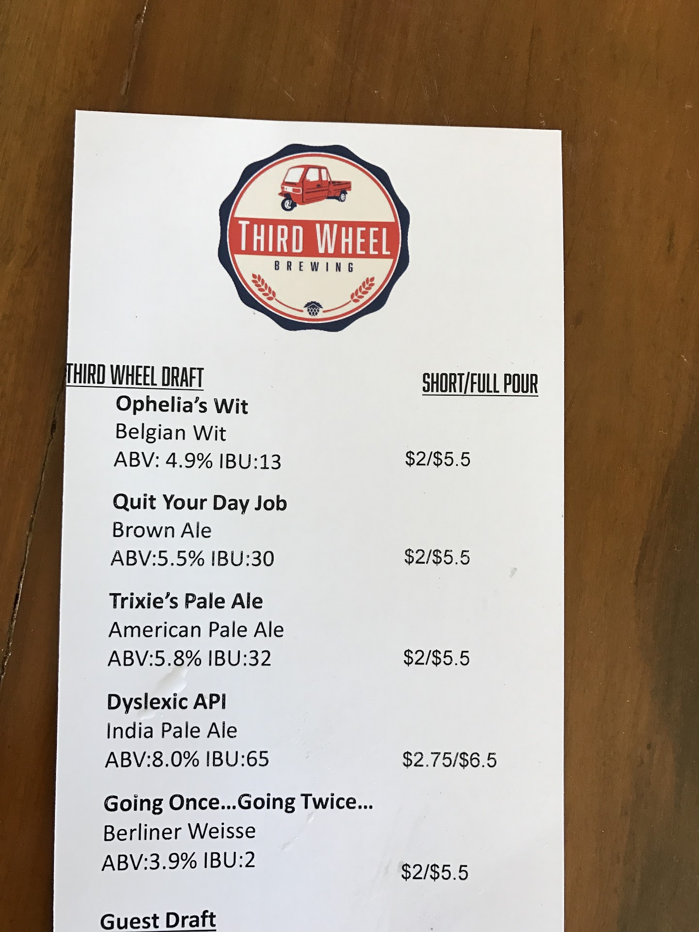 Read moreThird Wheel is awesome, we've been in about a dozen times. Nice open place. Good beers. I like darker beers and it seems they have a stout, porter, and brown ale on tap at all times. They've had a coffee porter and imperial stout as special tappings. My friends like hoppier beers and all enjoy their APA & IPA. Good options on the guest taps, too. Cheap growler fills on Sundays. Food is really good & comes out fast. I've enjoyed everything I've tried: the burger, wings, soup, pretzels, fries (with about 15 available dipping sauces). Plenty of entertainment: big screen TV for sports, trivia nights, and live bluegrass on Sundays. They probably have 25 board games-the Connect Four occupied my little ones for quite awhile. Golden Tee and an arcade game that has all the classics: DK, Galaga, etc. My only suggestion-some kind of rewards program. After you drink about 10-12 pints, you...