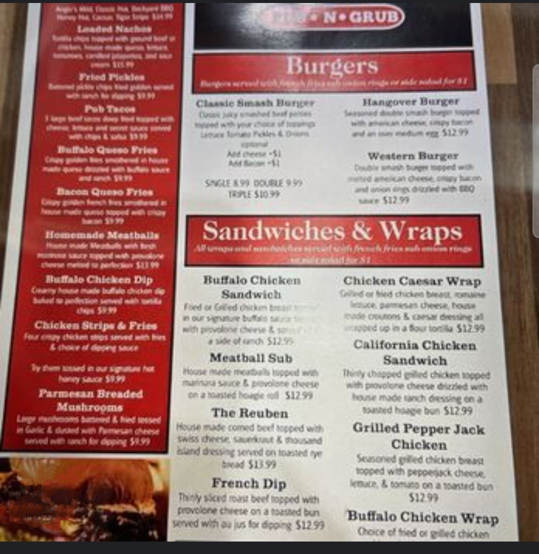 My friends said we had to go try the tacos and meatballs. Unfortunately they had no taco sauce, so we opted for loaded nachos, fried mushrooms and the meatballs. The nachos werenât loaded; they were covered with lettuce to make it appear more full and had a burger broken up (which actually tasted good) and no salsa or cream cheese. The fried mushrooms tasted good, but were swimming in a puddle of oil so we didnât eat about 6 mushrooms (also horseradish in the sauce would elevate this appetizer). The marinara and meatballs tasted like someone spilled the entire salt bottle in it-BLAH. We were polite with the server (who didnât refill my friendâs water or take our order very quickly and didnât know drink offerings, but said their tap wasnât working). She had a tense presentation the entire time we were there and seemed irritated that we asked for the table to be cleaned (which had puddles from drink condensation) when we sat down. Although she is not the cook, she was pretty apathetic about the food being âoffâ and only said, âIâll let them knowâ. As we left, my friend said the place was good the first two times they tried it, they will give it one more chance, but honestly the three of us complained quite a bit on the drive home how disappointing the meal was and how bloated we felt. I should have taken a photo of the pool of oil in the mushrooms. I hope things get better. The vibe feels neat when you arrive. Itâs updated and looks pretty clean. Staff and food improvements will hopefully have them succeed in...